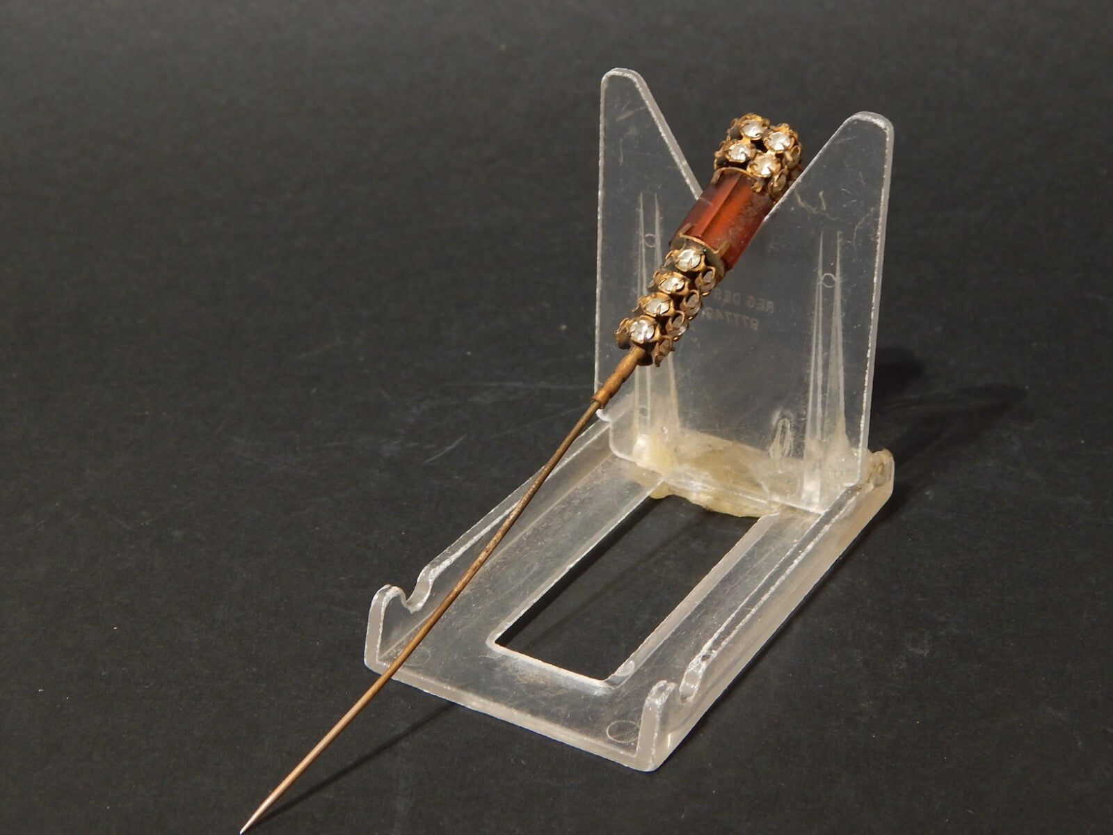 In questa inserzione viene presentato uno spillone per cappello di epoca vittoriana che misura 14 cm di lunghezza