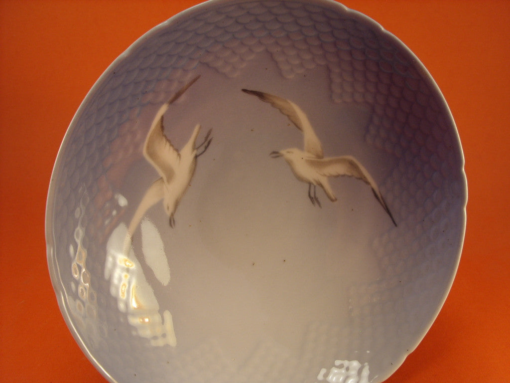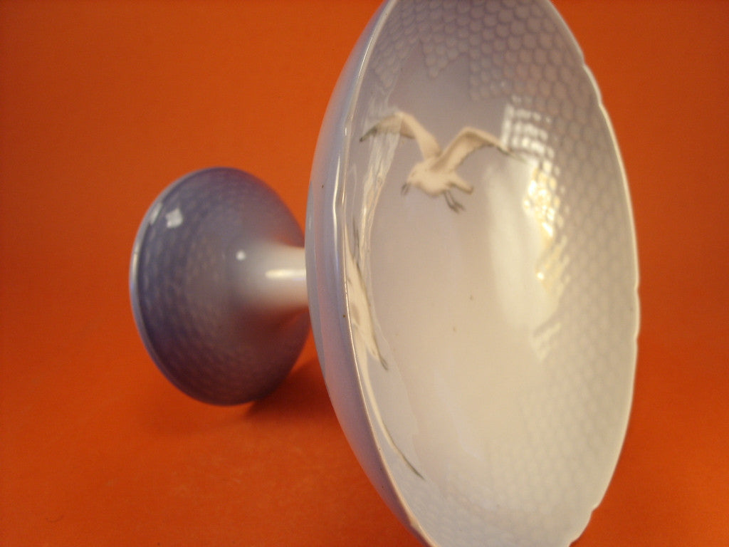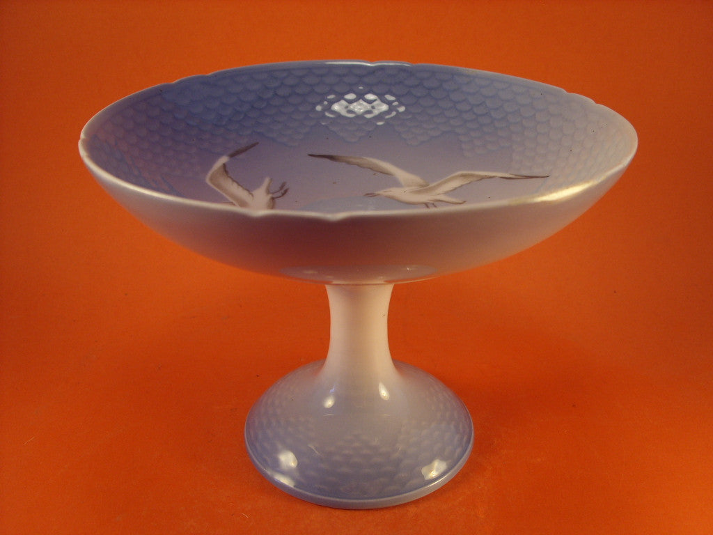 Alzata portafrutta della famosissima serie “SEAGULL” prodotta dalla manifattura Danese Bing&Grondahl. E' realizzata in finissima porcellana, il motivo ornamentale è in rilievo decorato a mano nelle classiche sfumature azzurre applicate sottosmalto.