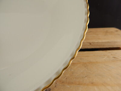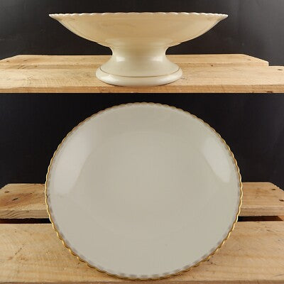 In questa inserzione viene presentata una fruttiera o alzata realizzata in porcellana color avorio con bordo smerlato rifinito in oro zecchino dalla manifattura tedesca Winterling Bavaria nei primi anni ‘50