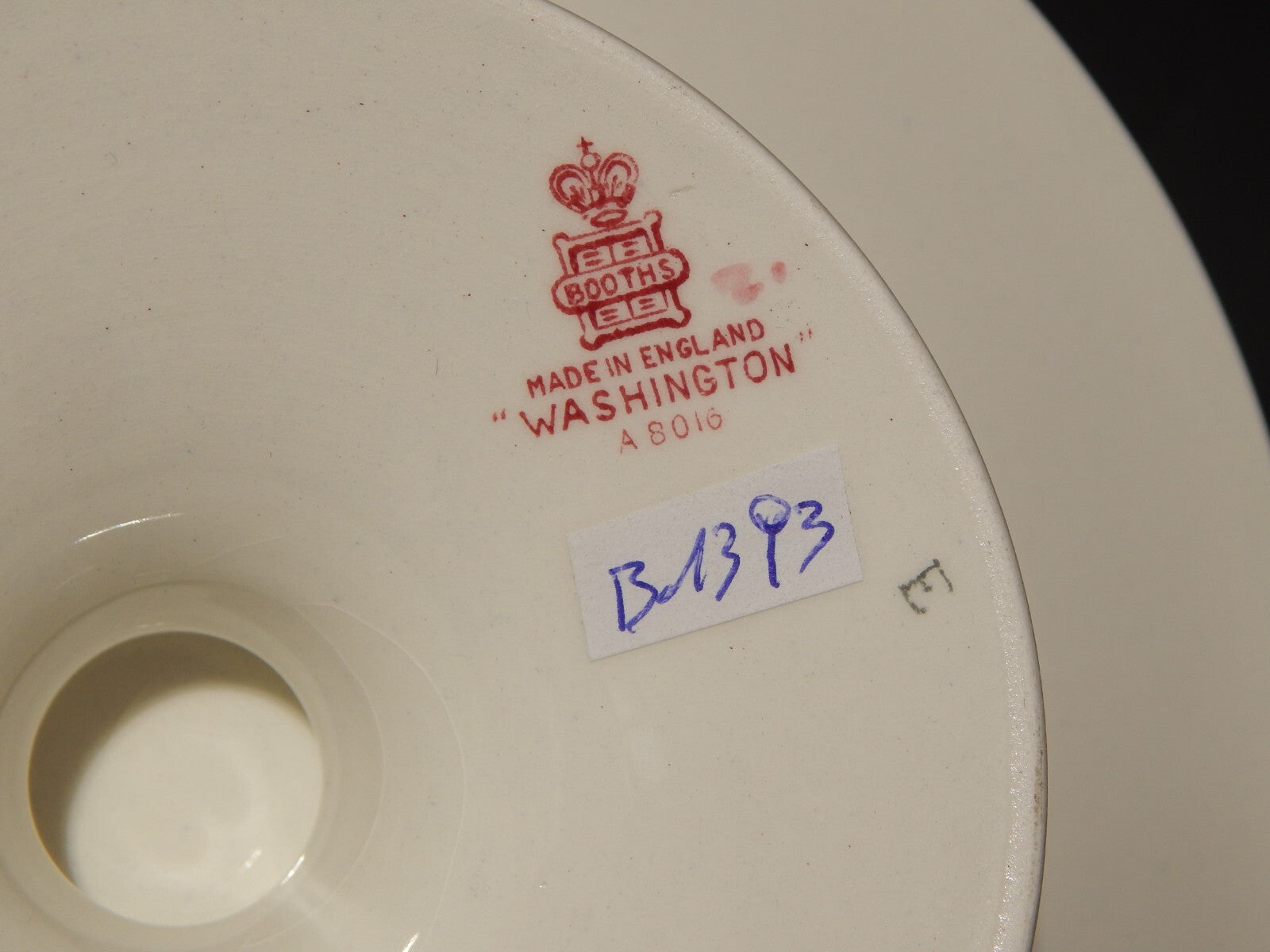 In questa inserzione viene presentata un'antica alzata o centrotavola realizzata nei primi anni del 1900 dalla rinomata manifattura inglese Booths nel famoso decoro Washington sui toni del rosa