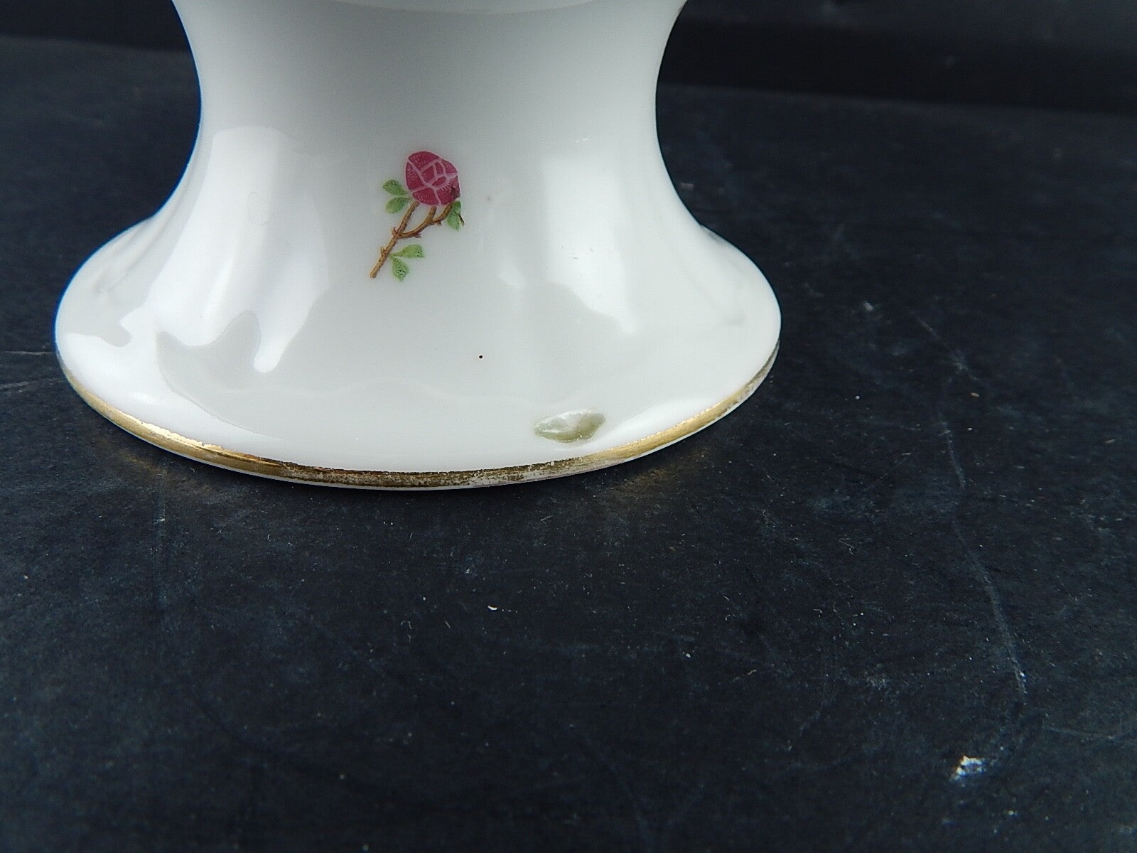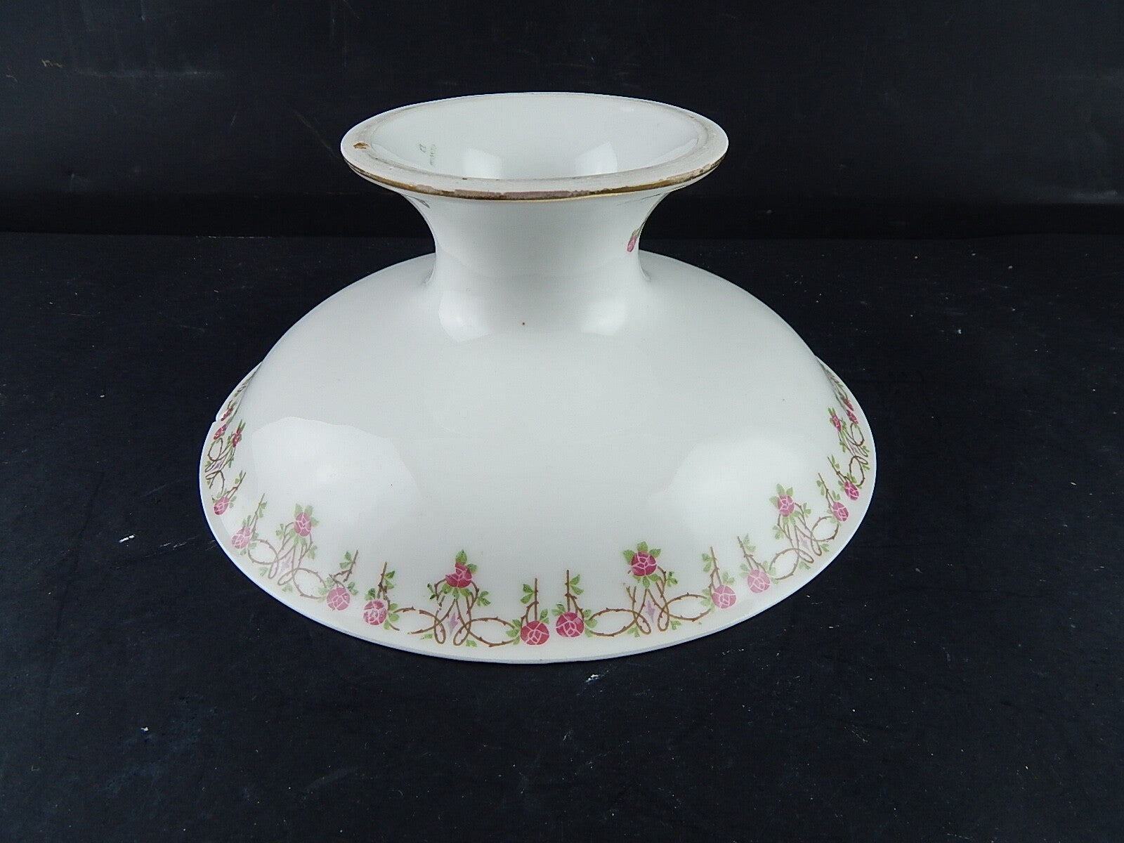 L'alzata in porcellana bianca è decorata a mano in policromia in ottime condizioni misura 22,5 cm di diametro, 11 cm alla base e 9,5 cm di altezza, come si può vedere dalle foto presenta una scheggiatura sul bordo