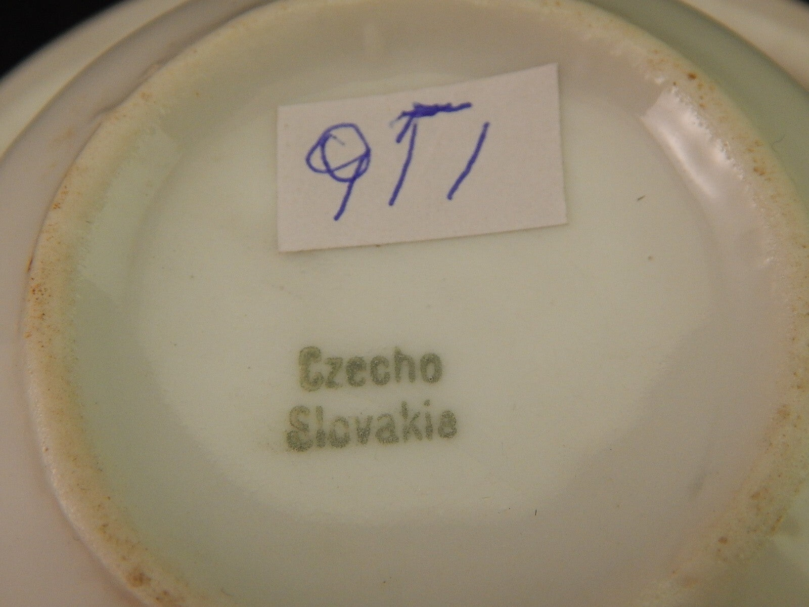 In questa inserzione viene presentata un'antica tazzina da caffè in porcellana con decoro a ghirlanda realizzata da una manifattura Boema nella prima metà del 1900