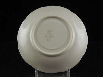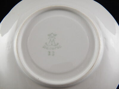 La tazzina misura 7 cm. di diametro e 4 cm. di altezza, il piattino misura 11 cm. di diametro, come si può vedere dalle foto ha una minima scheggiatura sul bordo