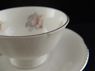 La tazzina è stata realizzata in porcellana bianca con decoro a tema floreale e rifinita con profilo in argento dalla manifattura tedesca Mitterteich Bavaria negli anni ‘30.