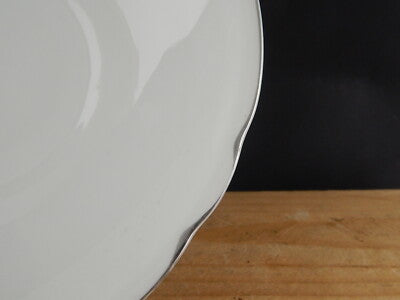 In questa inserzione viene presentata una alzata in porcellana bianca di altissima qualità rifinita con un profilo in argento dalla manifattura italiana Verbano Laveno
