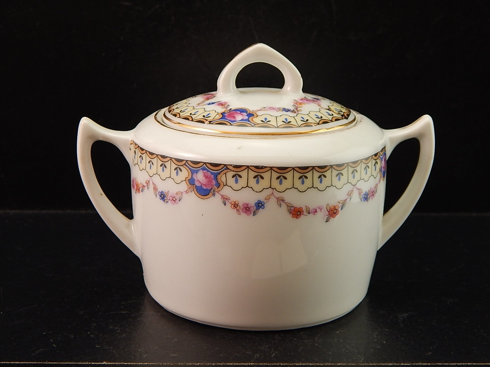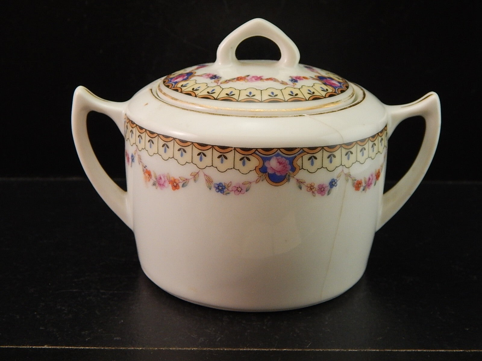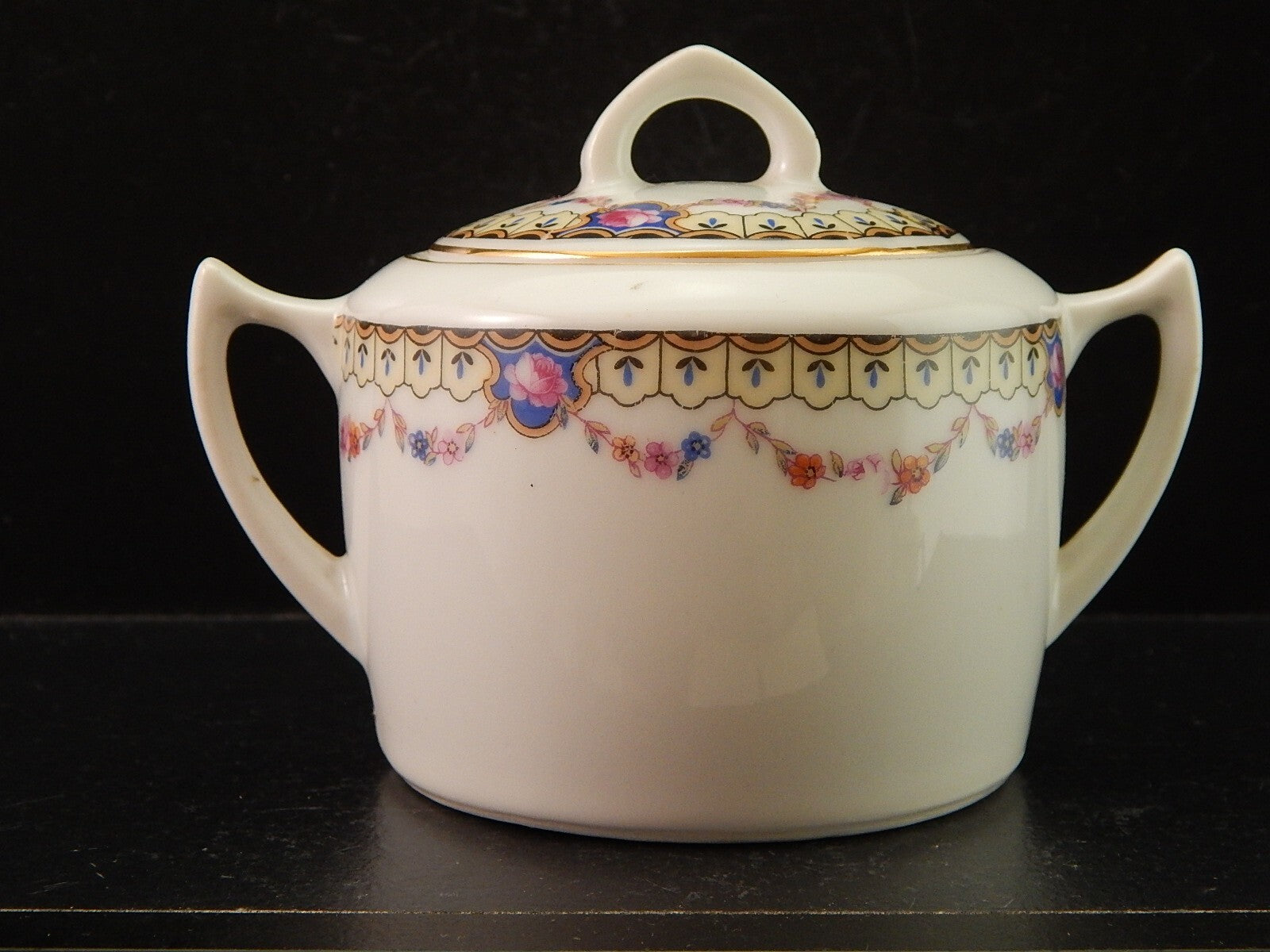 ANTICA ART DECO ZUCCHERIERA PORCELLANA BOEMA DECORO A GHIRLANDA DIFETTO