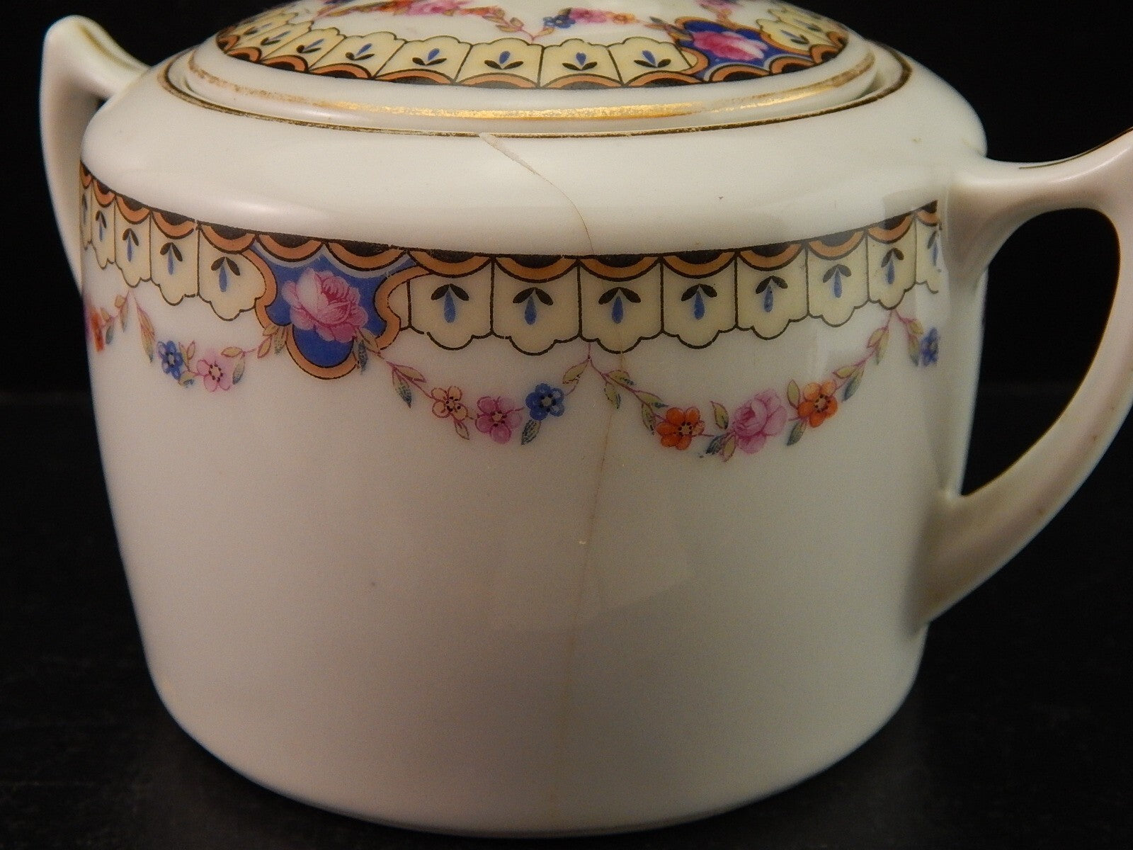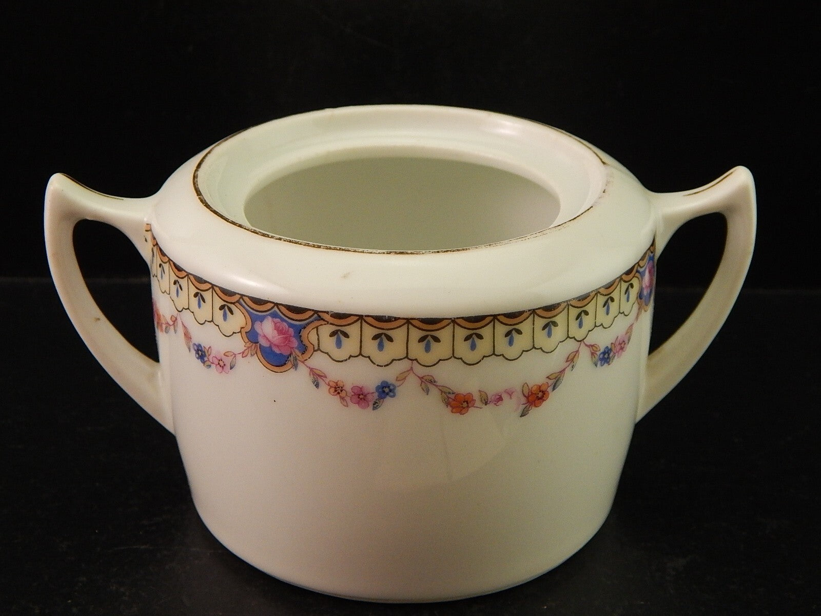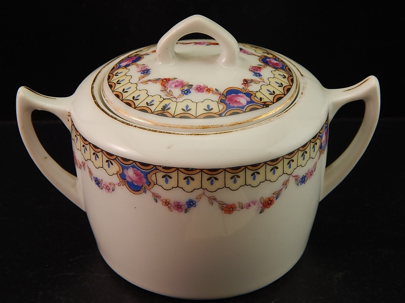 ANTICA ART DECO ZUCCHERIERA PORCELLANA BOEMA DECORO A GHIRLANDA DIFETTO