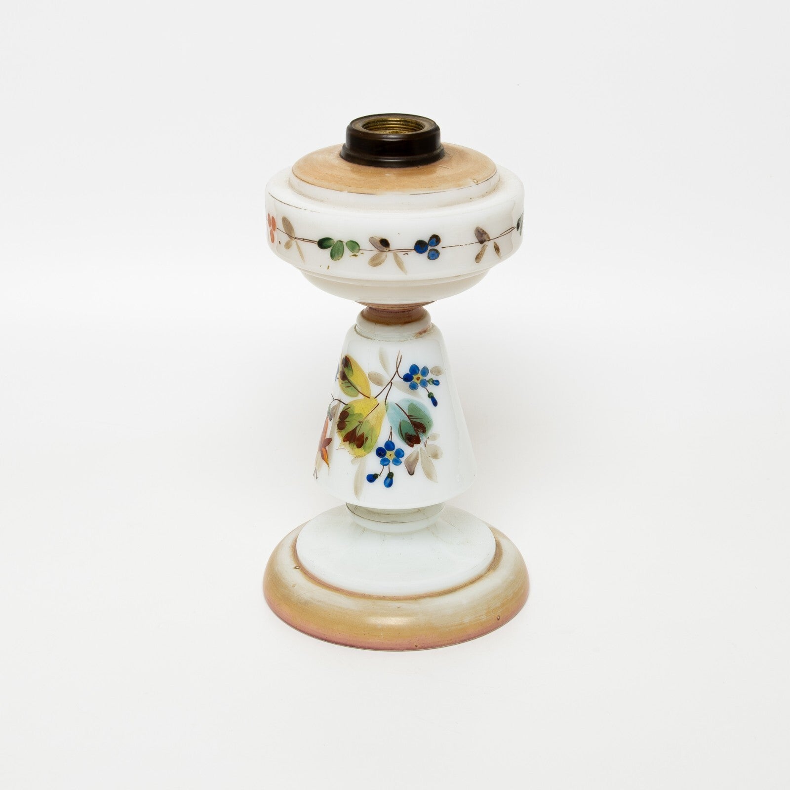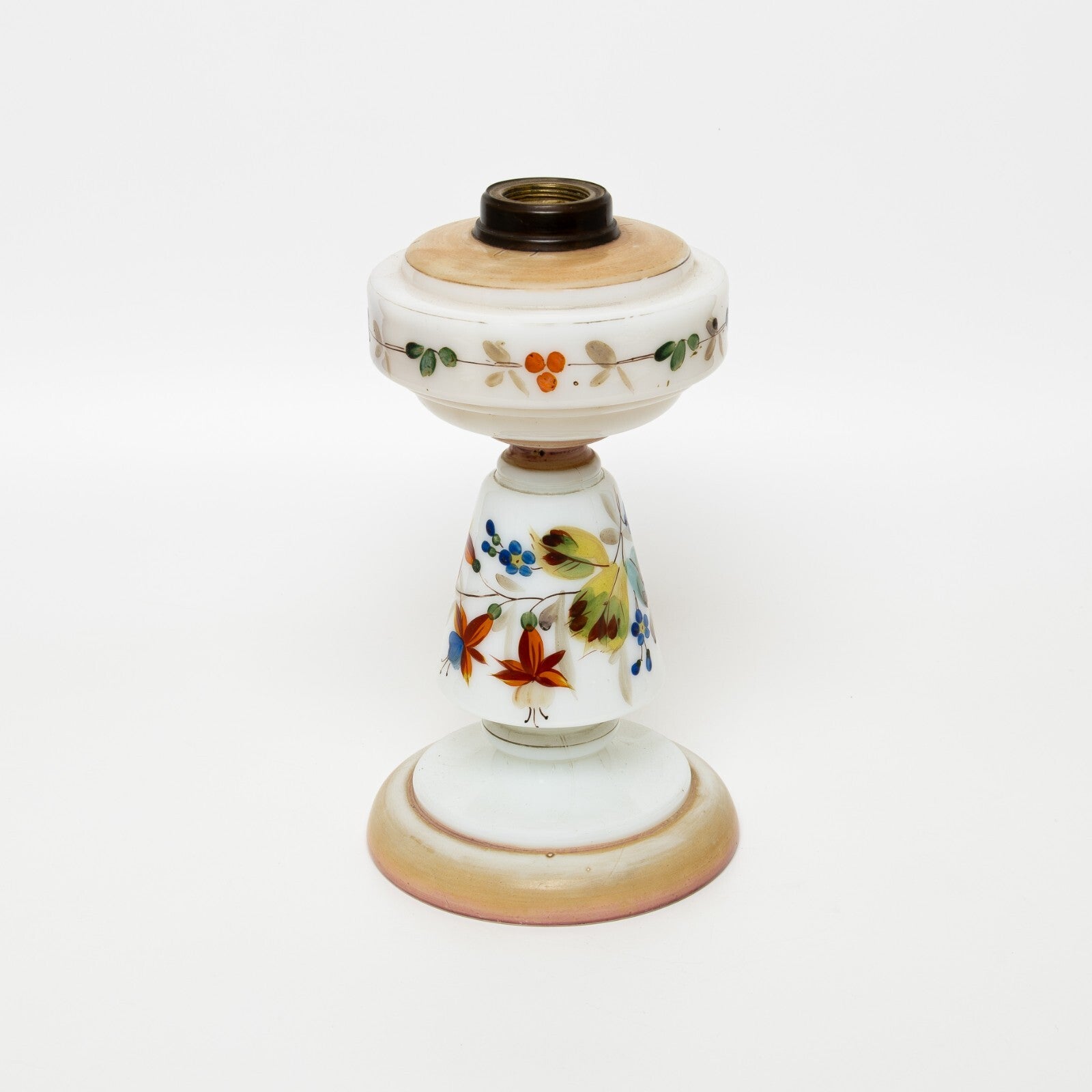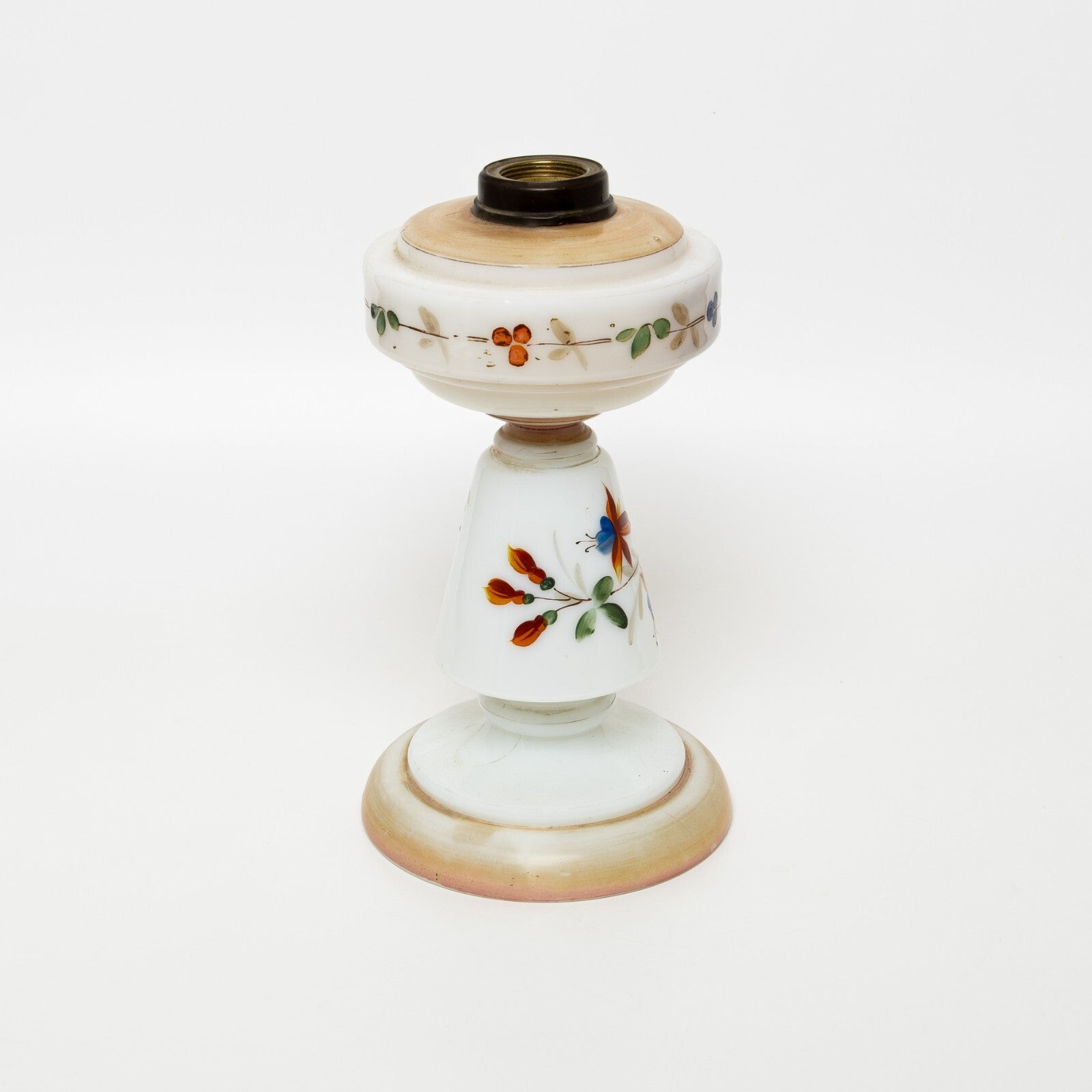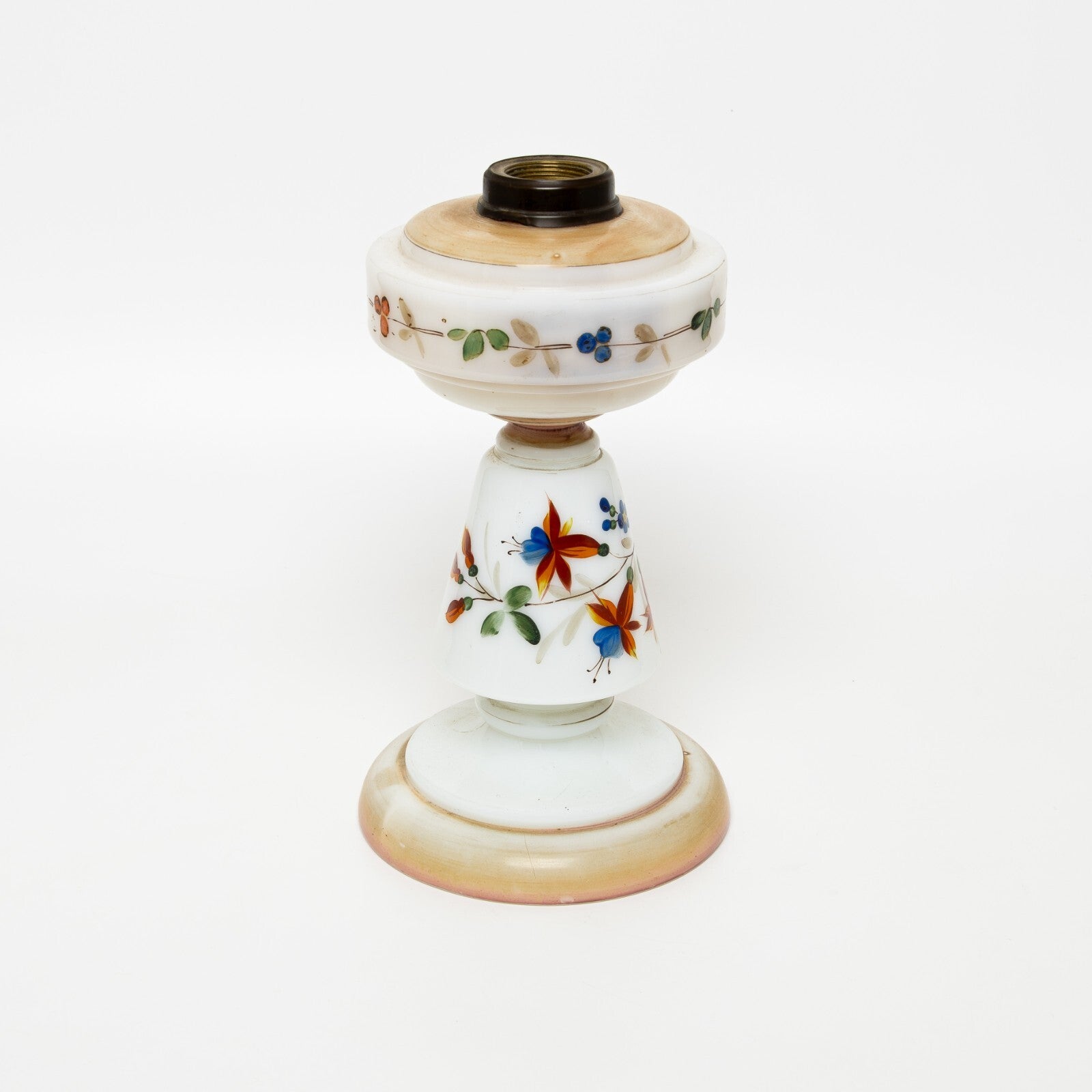 In questa inserzione viene presentata un'antica base per lampada da tavola di epoca Liberty realizzata in vetro opalino e dipinta a mano.