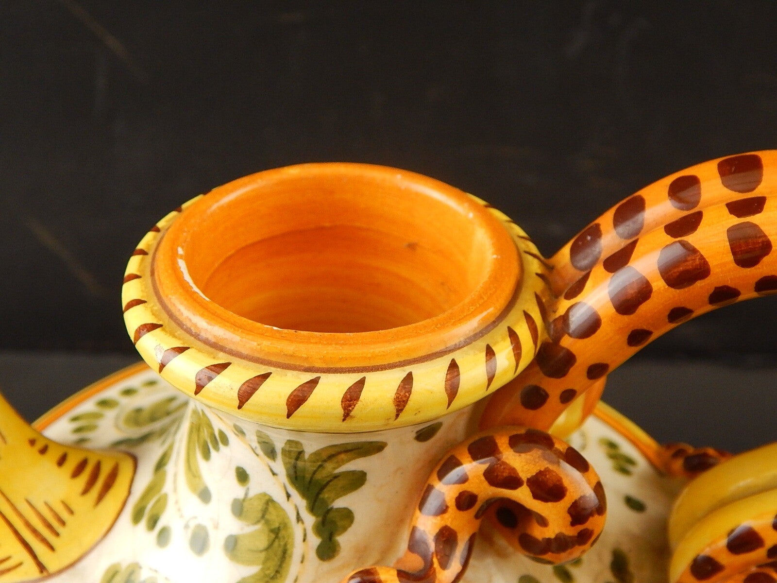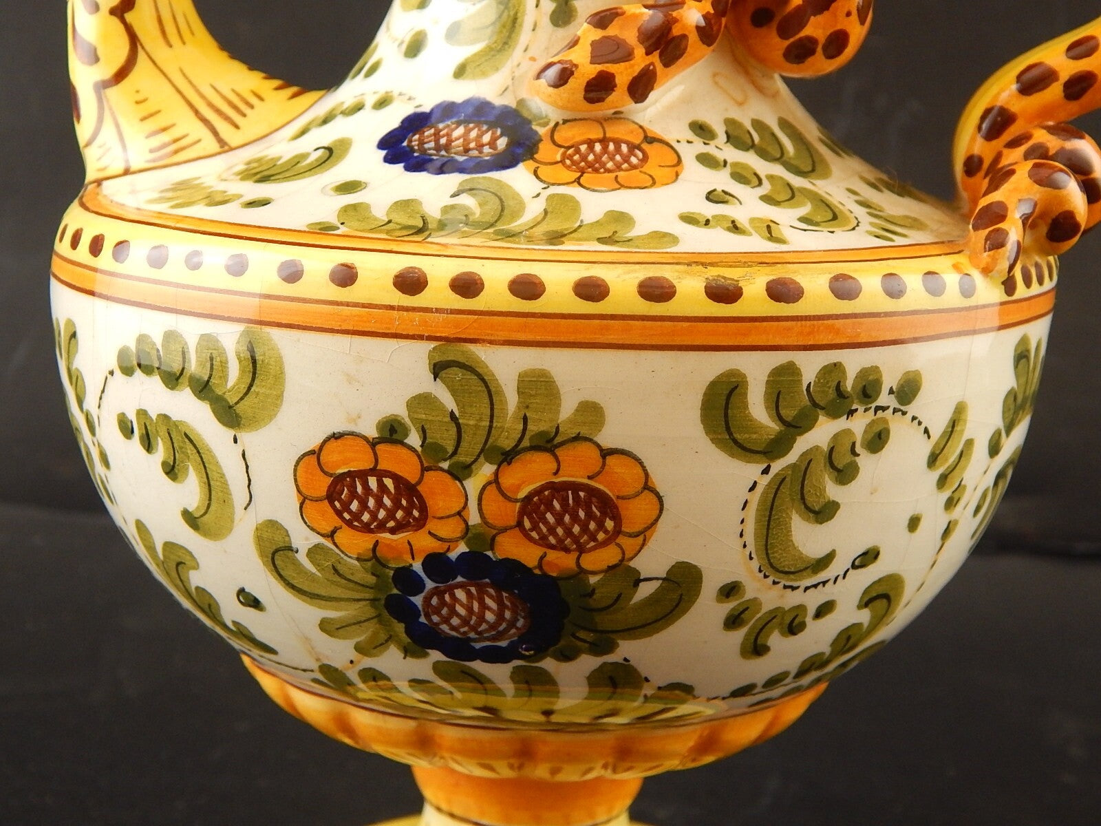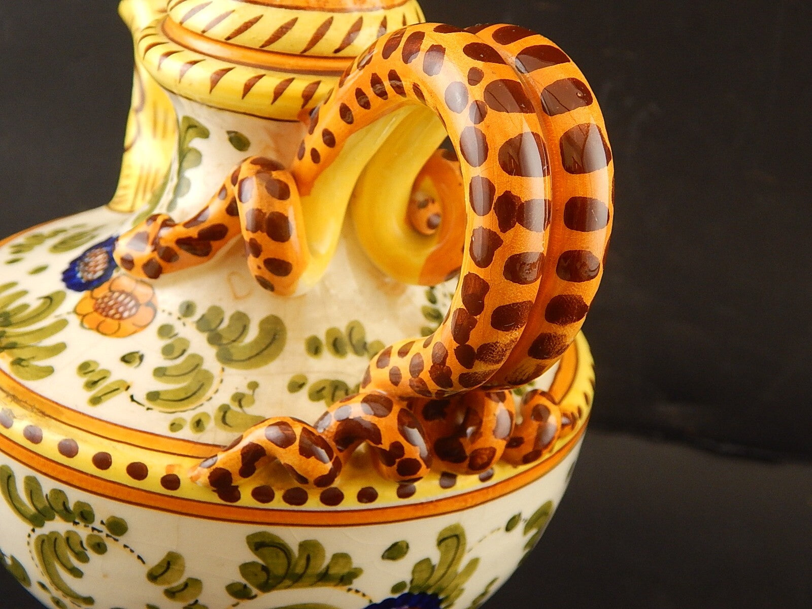 ANTICA CAFFETTIERA MAIOLICA CERAMICA POLICROMA FANTECHI S.I.F.M.A ANSA A SERPE