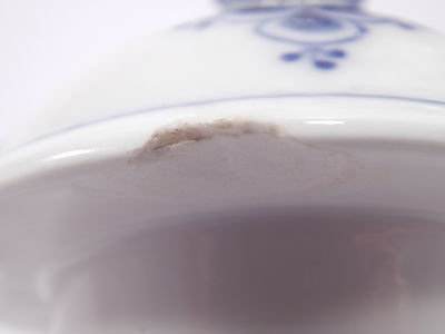 E' in perfette condizioni eccetto che per due piccole scheggiature sul bordo del coperchio