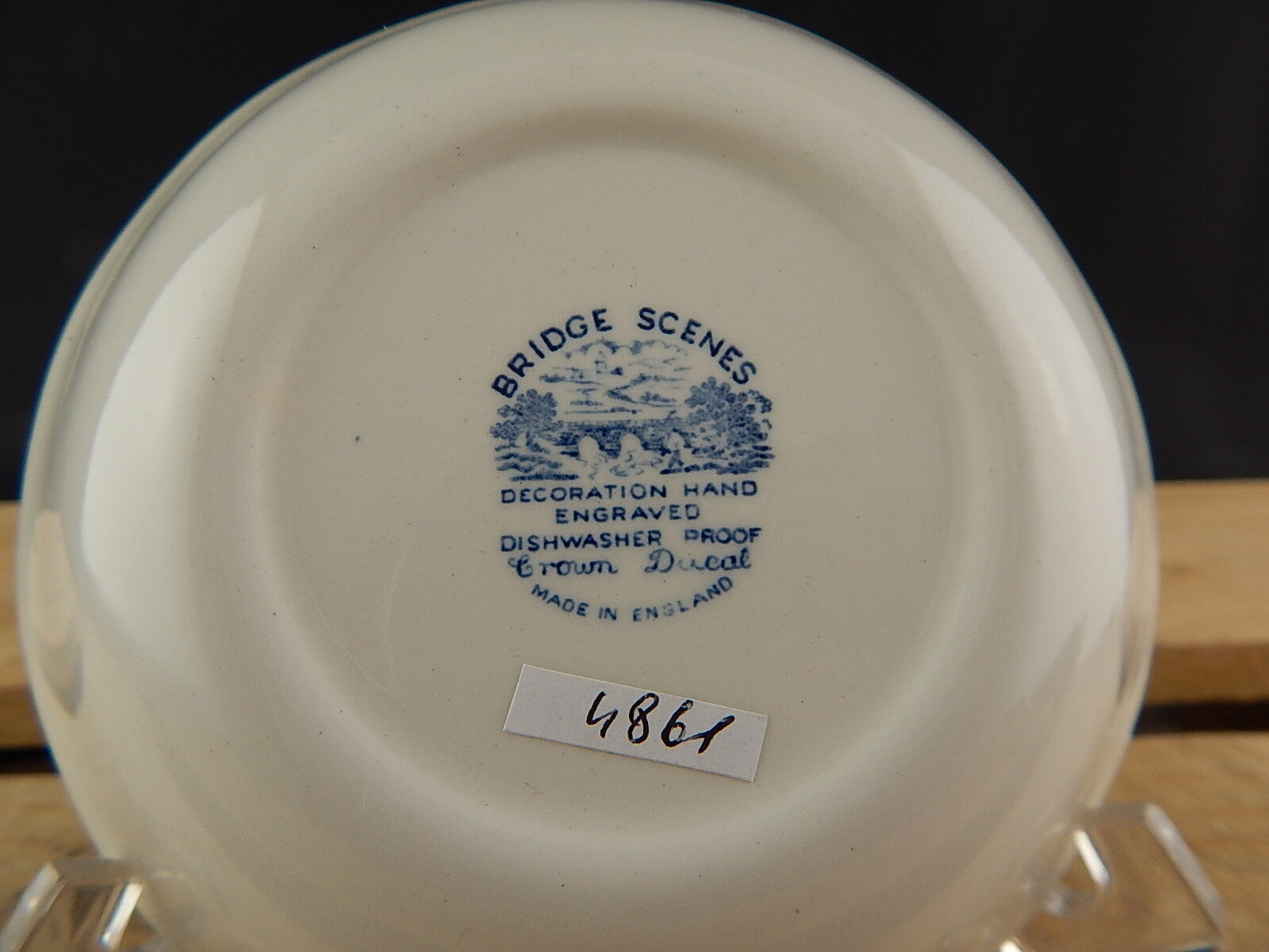 In questa inserzione viene presentata una ciotola realizzata dalla manifattura inglese Crown Ducal nel decoro stampato a mano Bridge Scenes