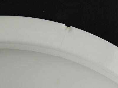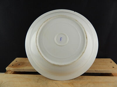 L’oggetto non ha marchio ma faceva parte di un servizio in cui alcuni pezzi avevano il marchio della Ginori usato nel 1800 “G” impresso in pasta. Misura 28 cm di diametro e 6 cm di altezza, come si può vedere dalle foto ha una scheggiatura sul bordo