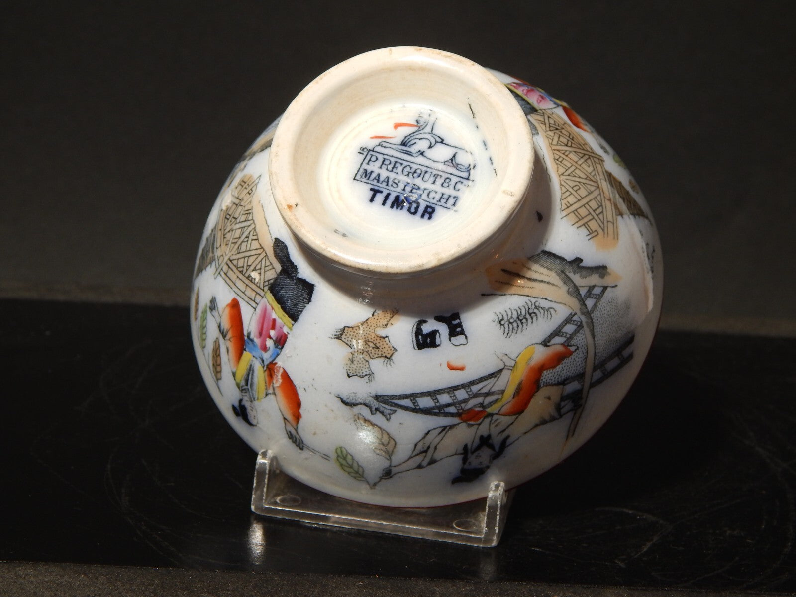 In questa inserzione viene presentata una ciotola in porcellana realizzata dalla famosa manifattura di Maastricht Petrus Regout nel decoro orientale Timor