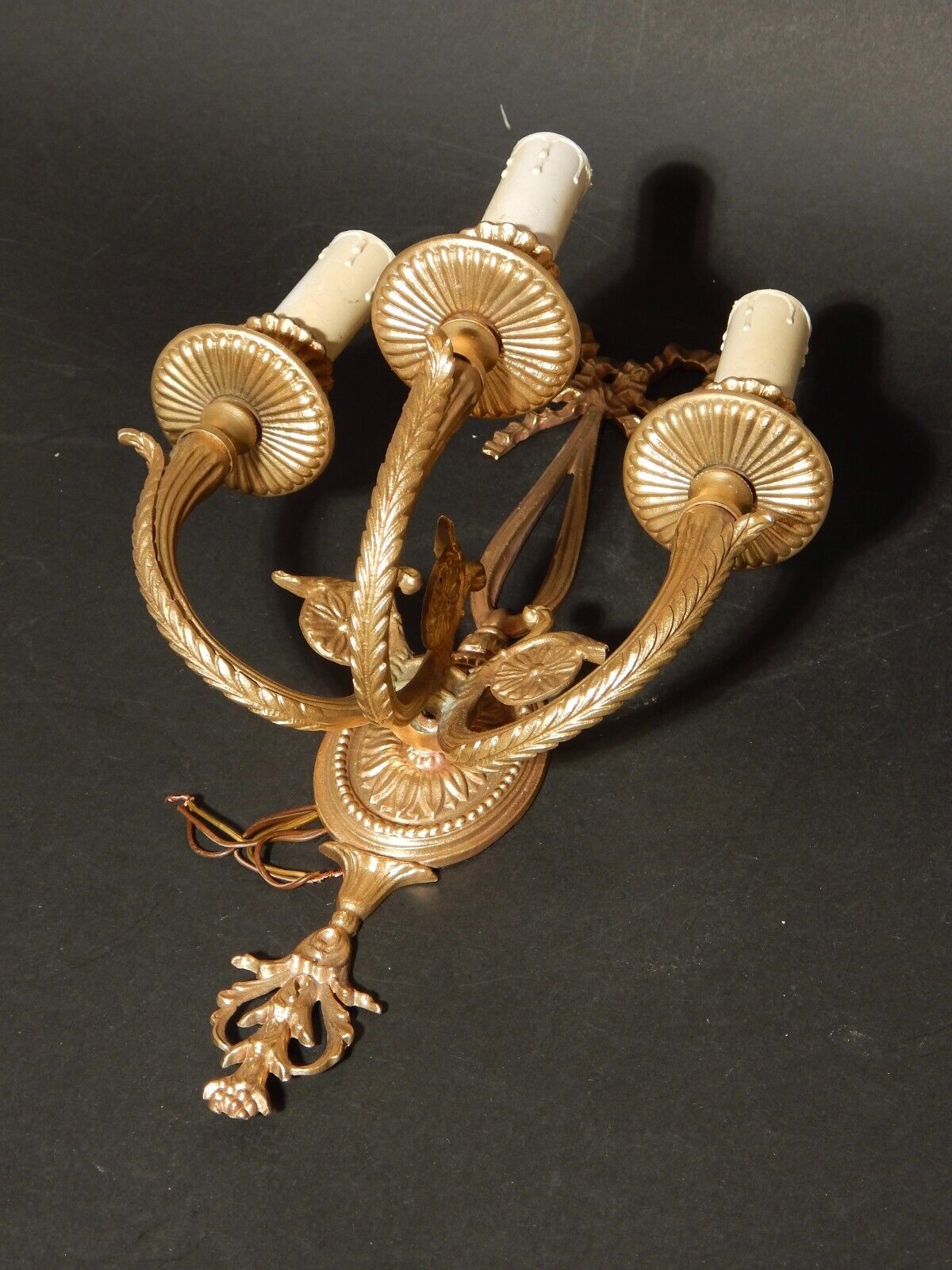 ANTICA ELEGANTE APPLIQUE 3 FUOCHI E 14 LAMPADA PARETE BRONZO OTTONE STILE IMPERO