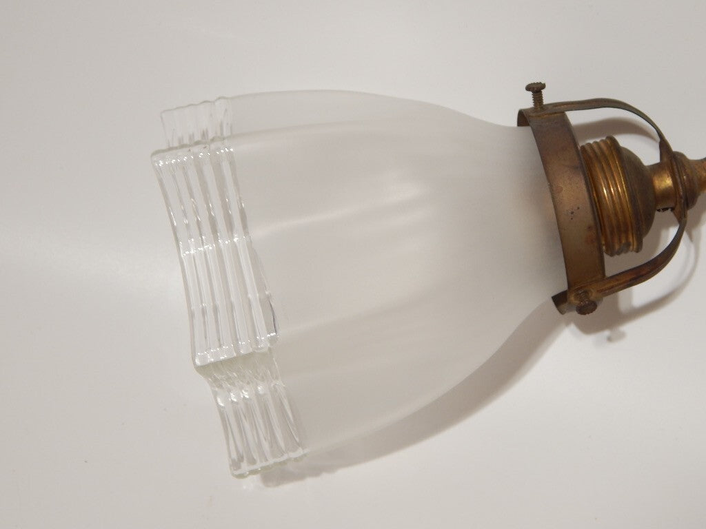 In questa inserzione viene presentata un'antica applique in ottone con tulip in vetro satinato