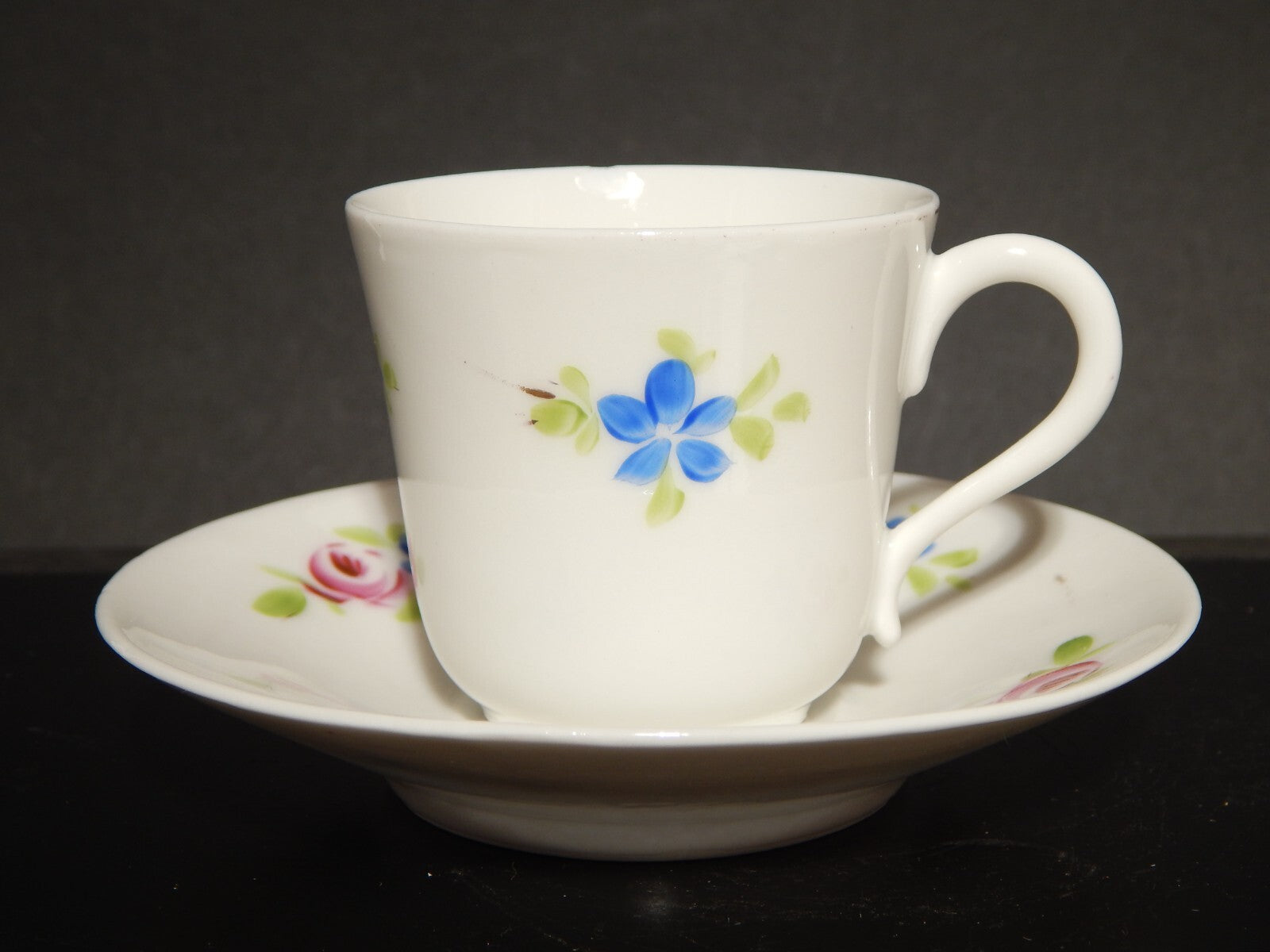 In questa inserzione viene presentata un'antica tazza con relativo piattino realizzata in Francia e risalente alla fine del 1800.