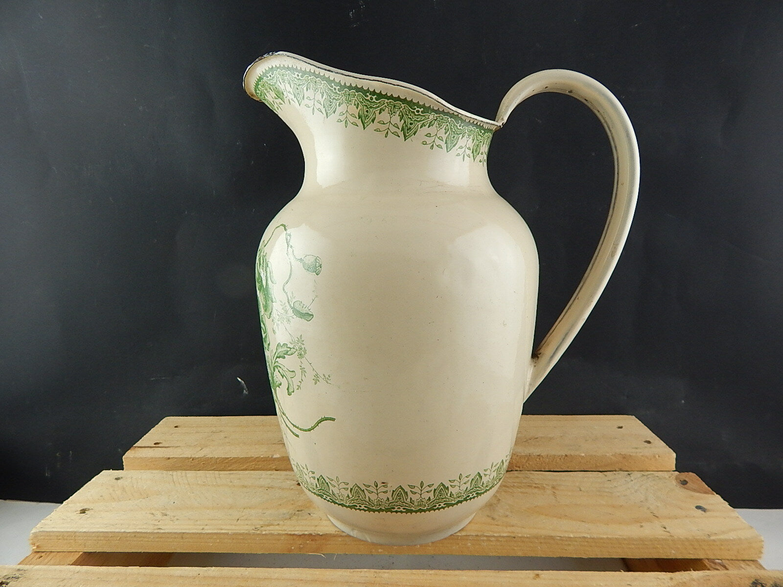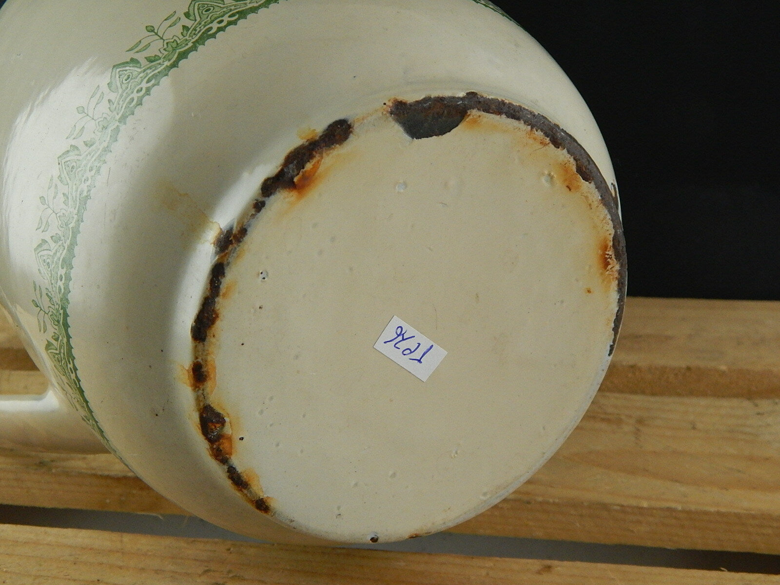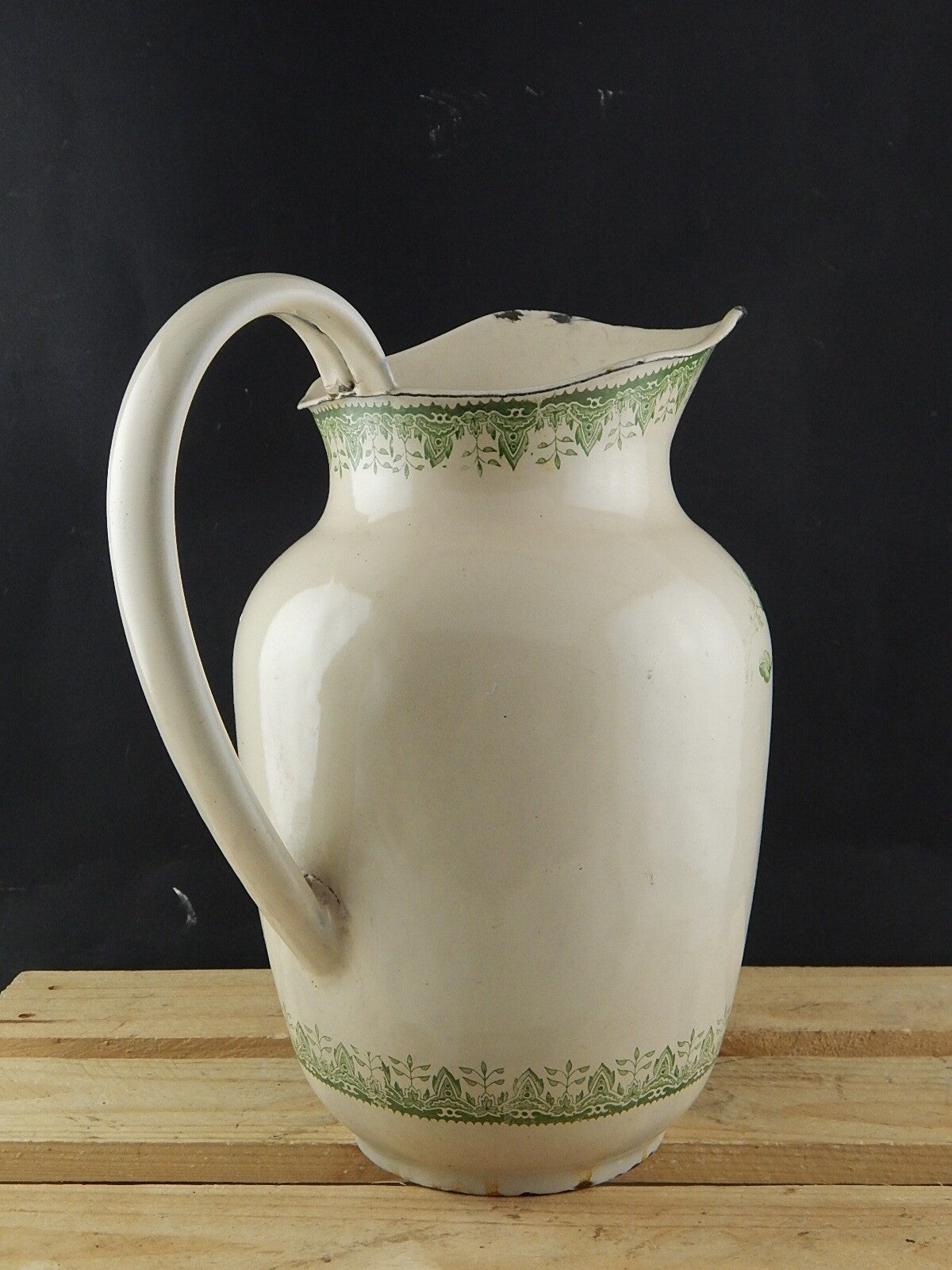 In questa inserzione viene presentata una grande brocca o versatoio in metallo smaltata porcellanata con decoro floreale