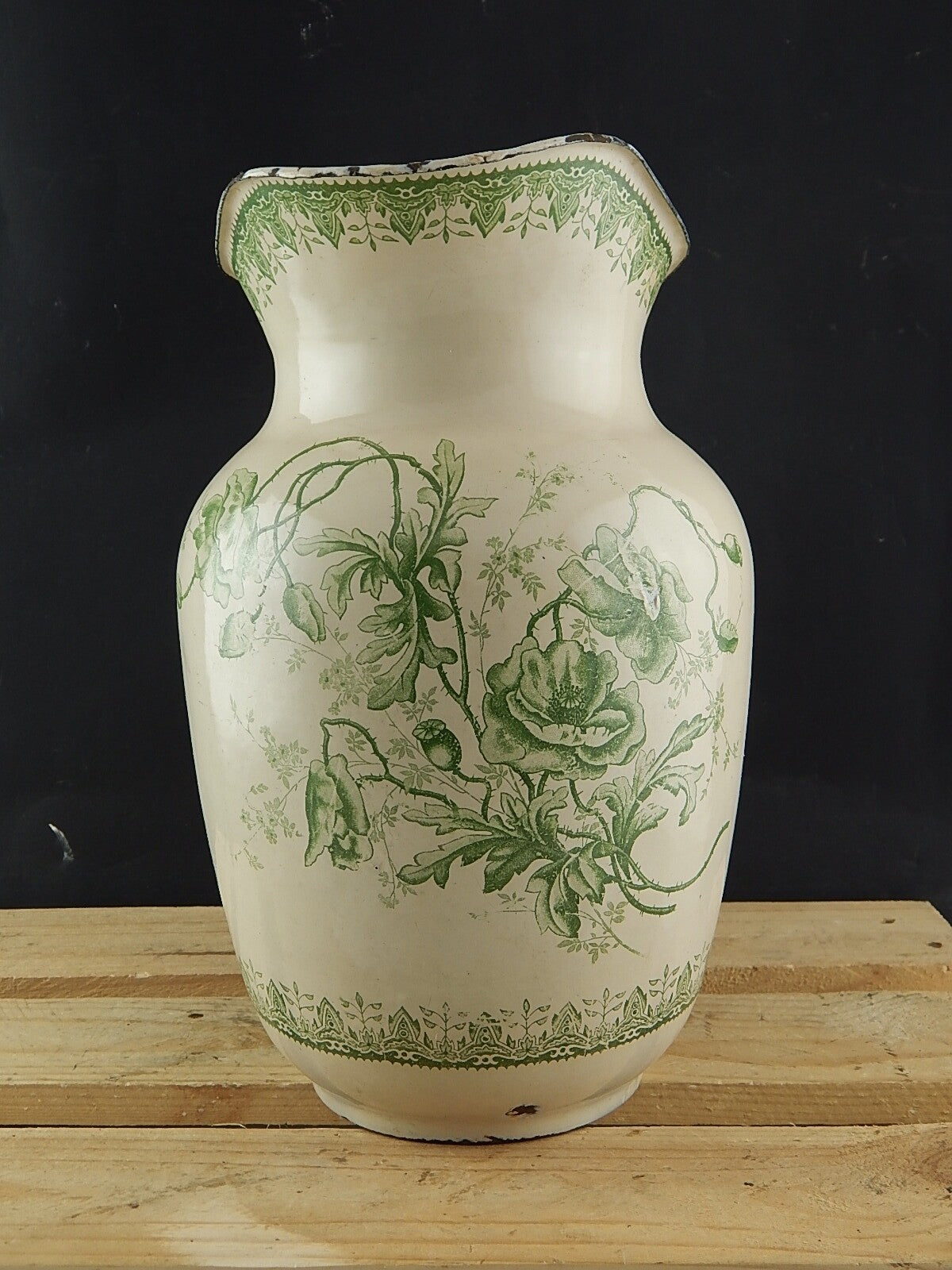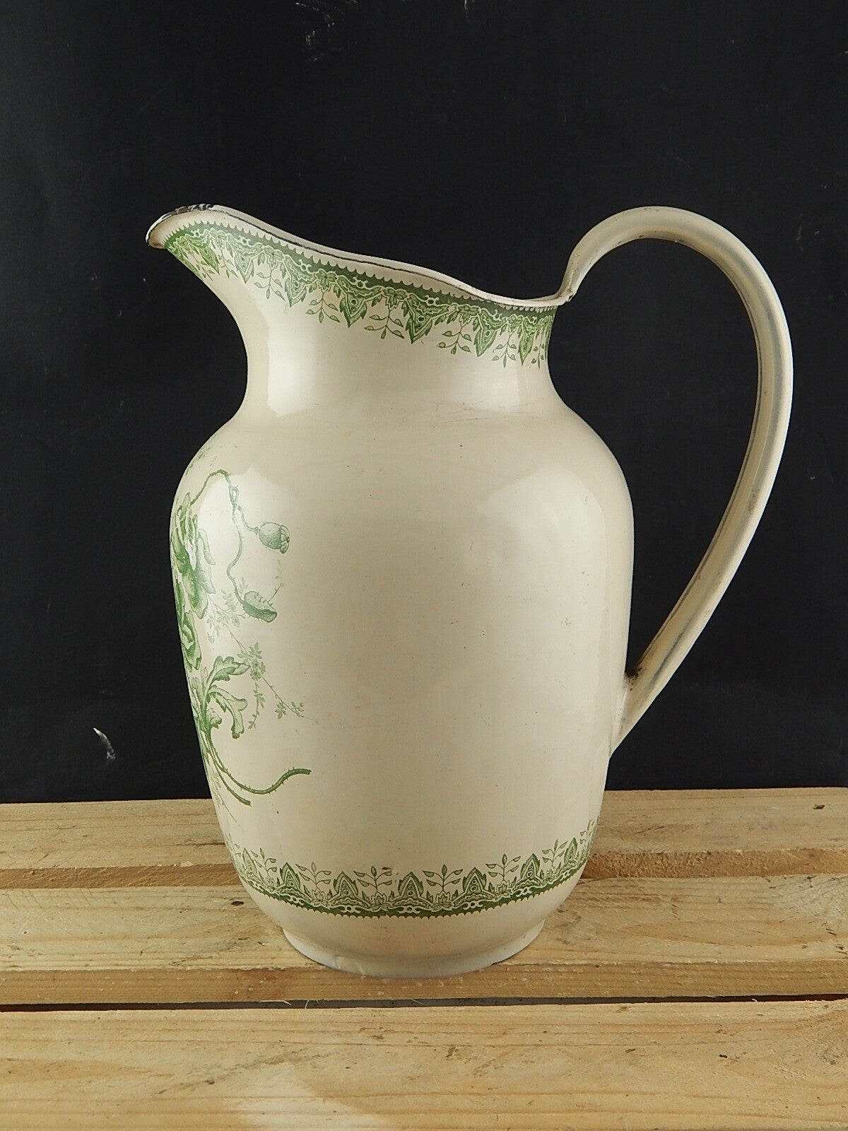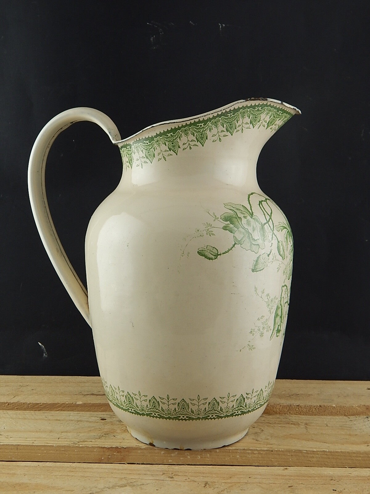 In questa inserzione viene presentata una grande brocca o versatoio in metallo smaltata porcellanata con decoro floreale