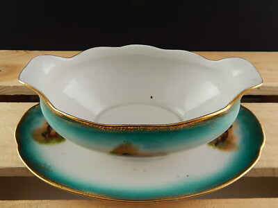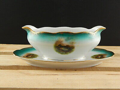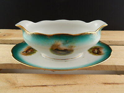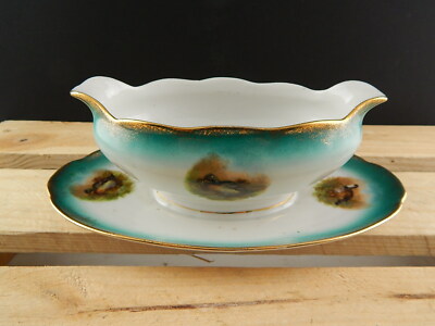 ANTICA FINE 800 SALSIERA PORCELLANA AUSTRIA VIENNA VERDE E ORO DIPINTA ANATRE