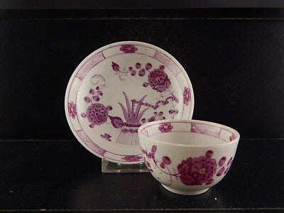 In questa inserzione viene presentata un'antica tazza da tè con relativo piattino in fine porcellana dipinta a mano realizzata nella prima metà del 1700 dalla Compagnia delle Indie
