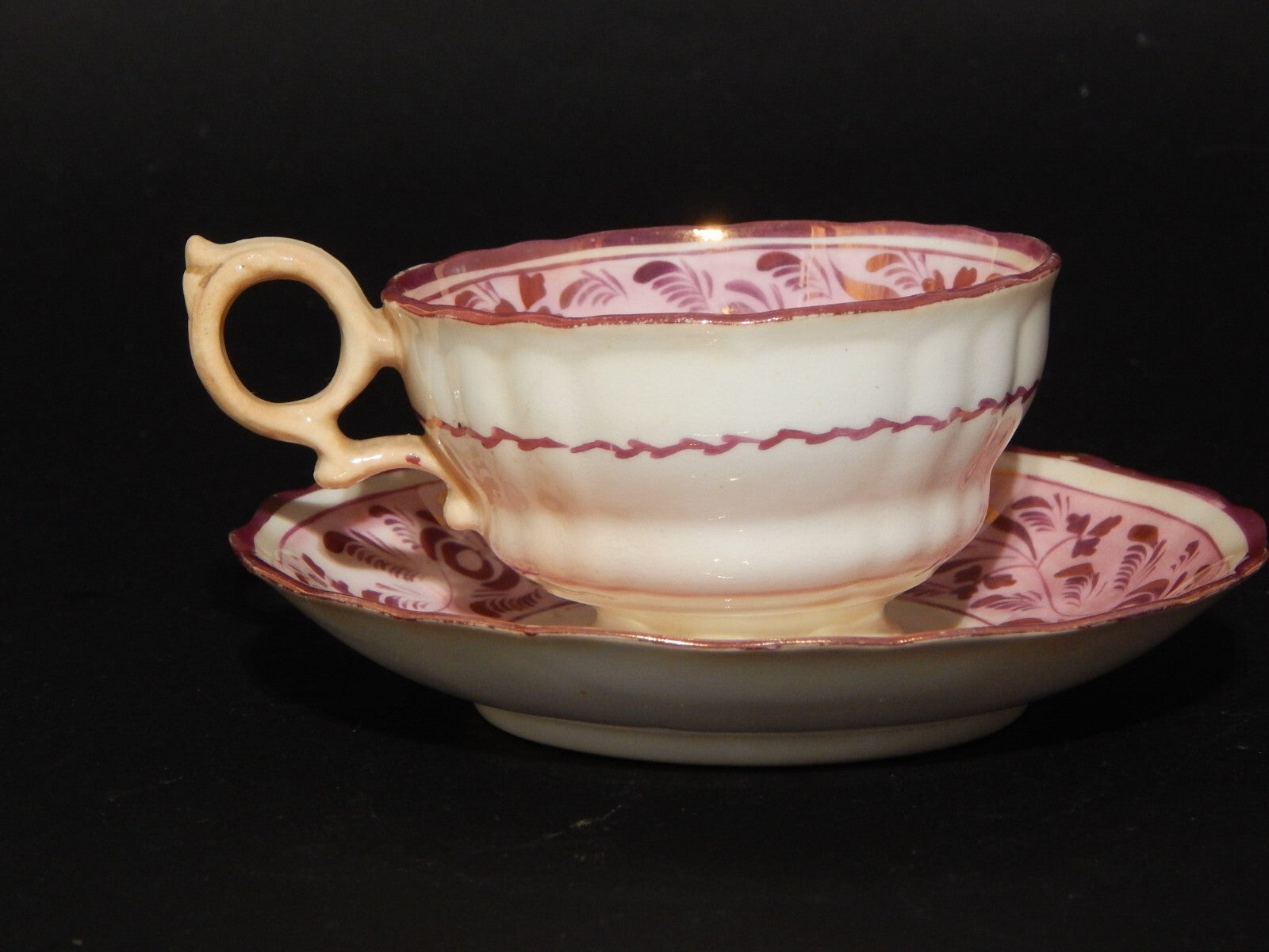 ANTICA GEORGIANA TAZZA TE' PORCELLANA LUSTRO ROSA STAFFORDSHIRE X245