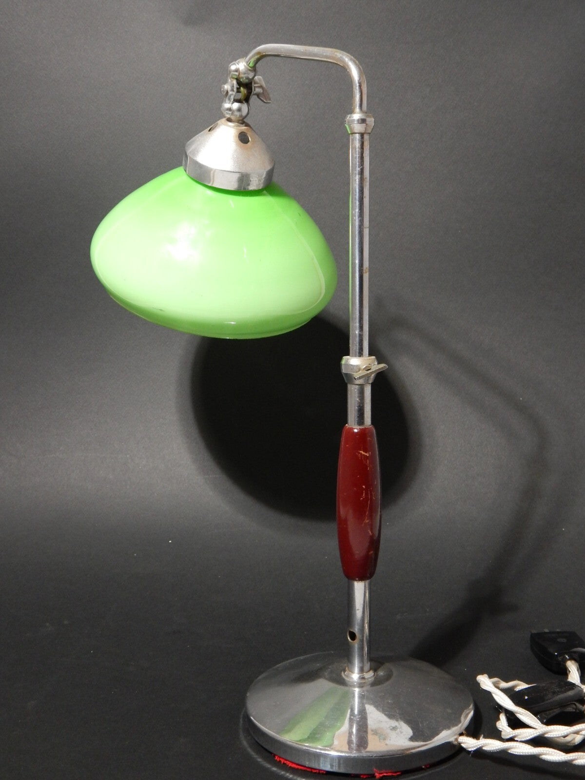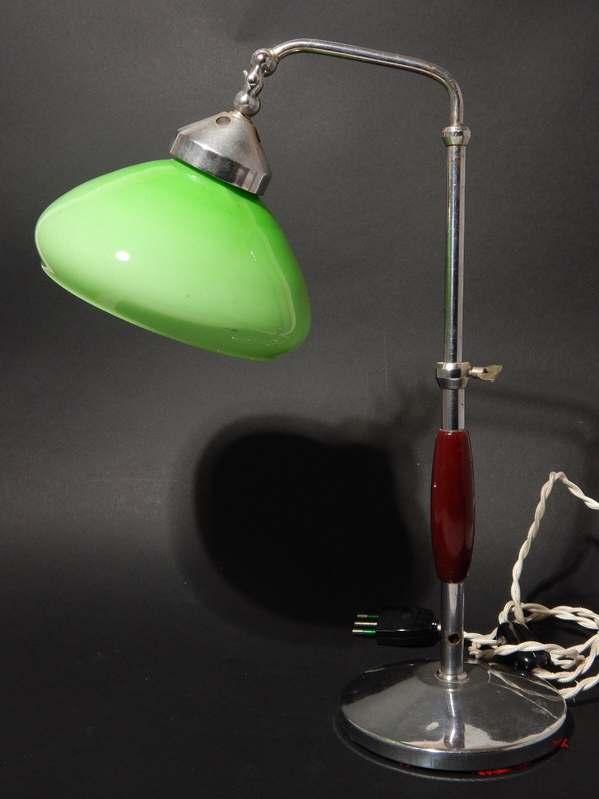 RETRO LAMPADA TAVOLO SCRIVANIA ART DECO MINISTERO PARALUME VETRO VERDE OPALINO