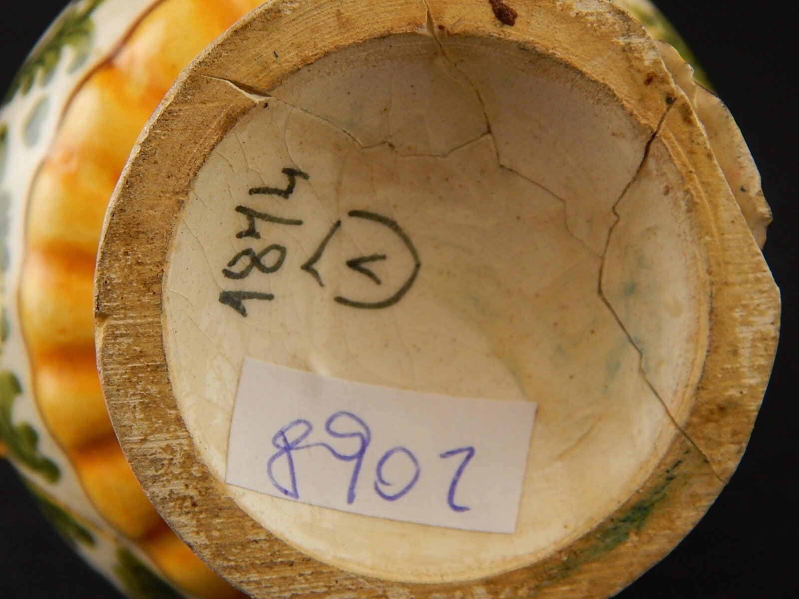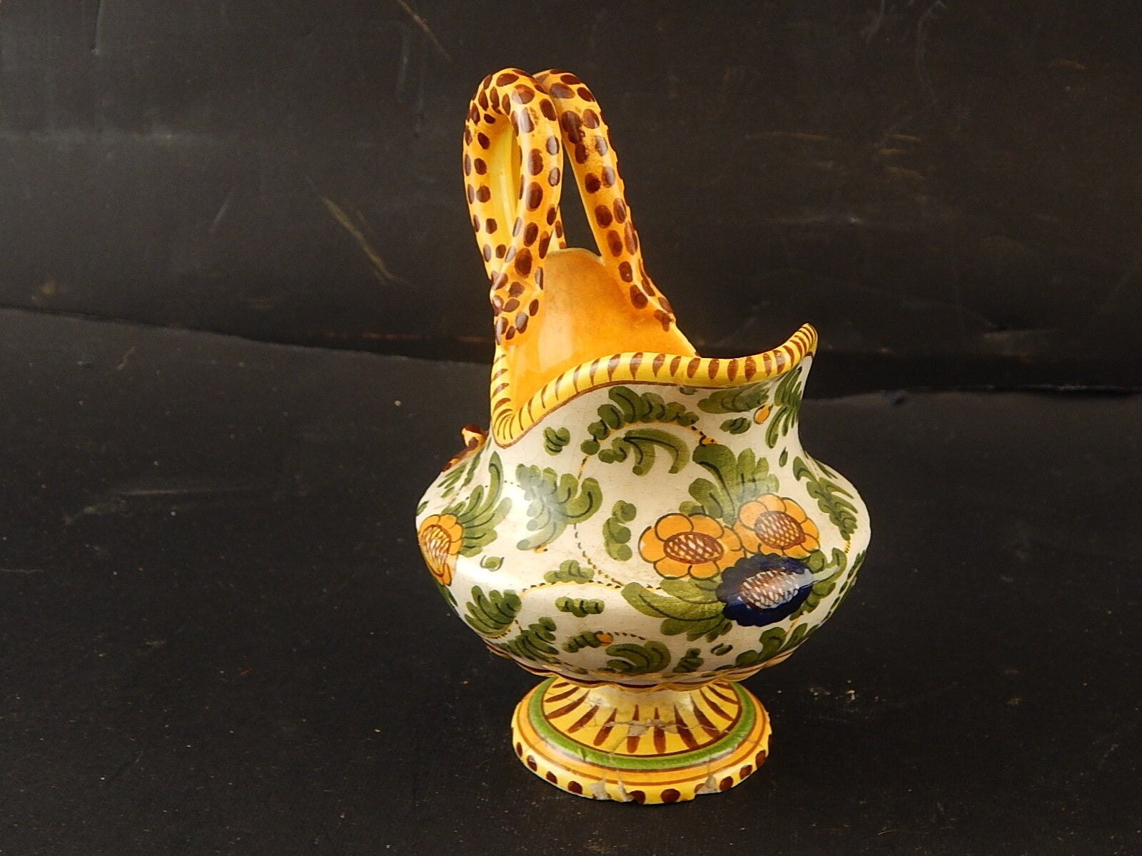 ANTICA LATTIERA BRICCO MAIOLICA CERAMICA POLICROMA FANTECHI ANSE A SERPE DIFETTI