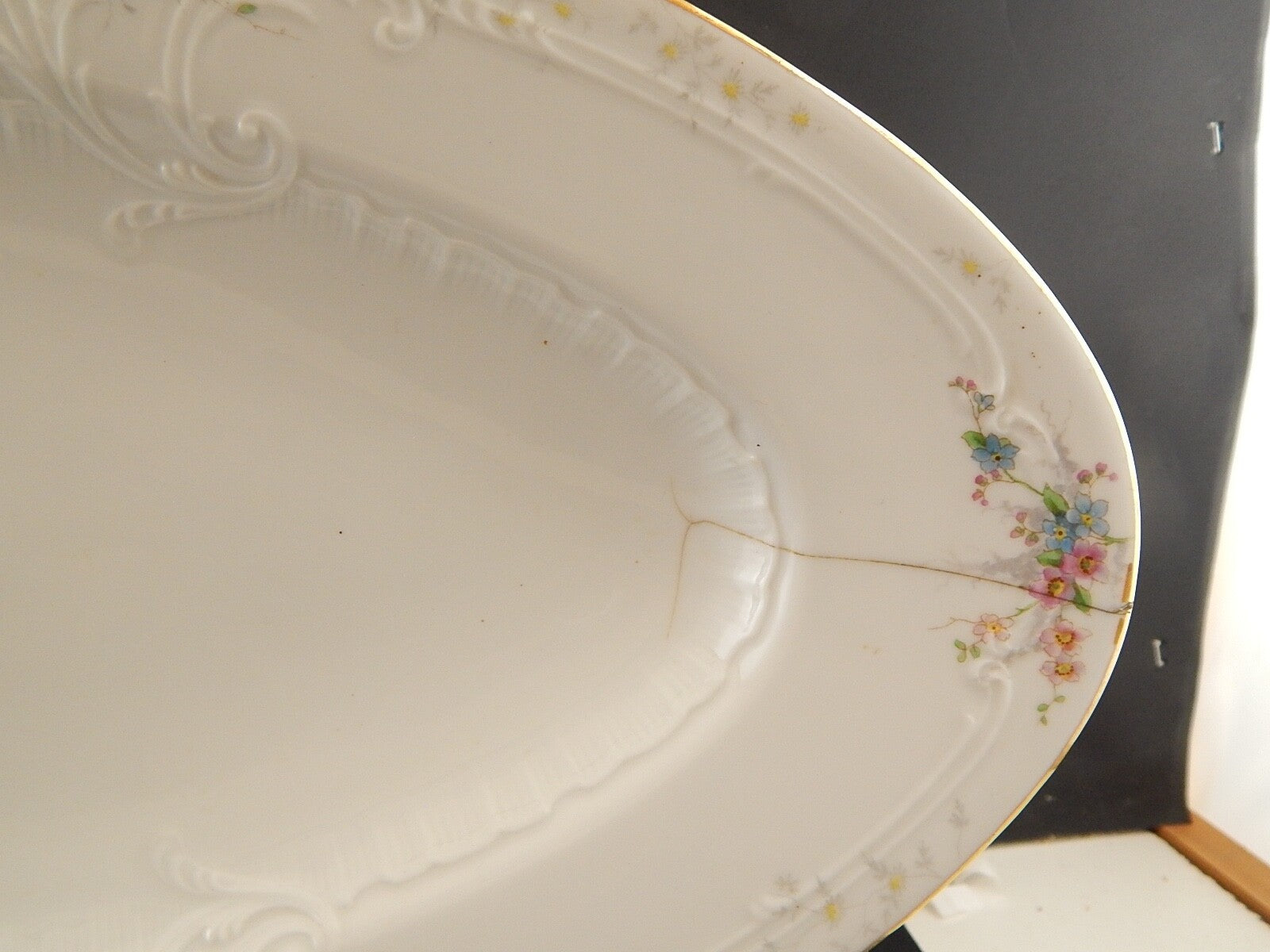 ANTICA LIBERTY 1900 PORCELLANA PIRKENHAMMER BOHEMIA VASSOIO PESCIERA DIFETTO