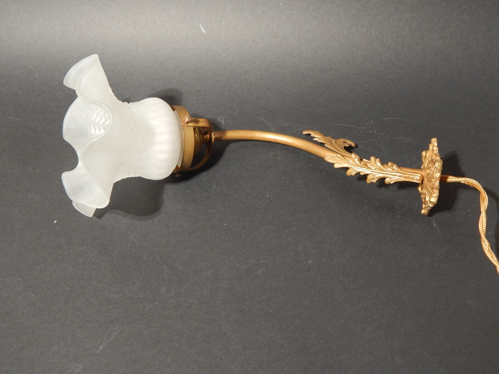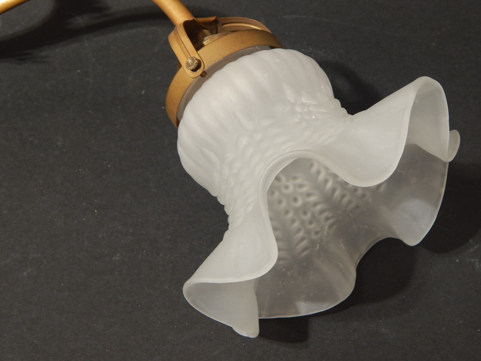 In questa inserzione viene presentata un'antica applique in ottone con tulip in vetro satinato