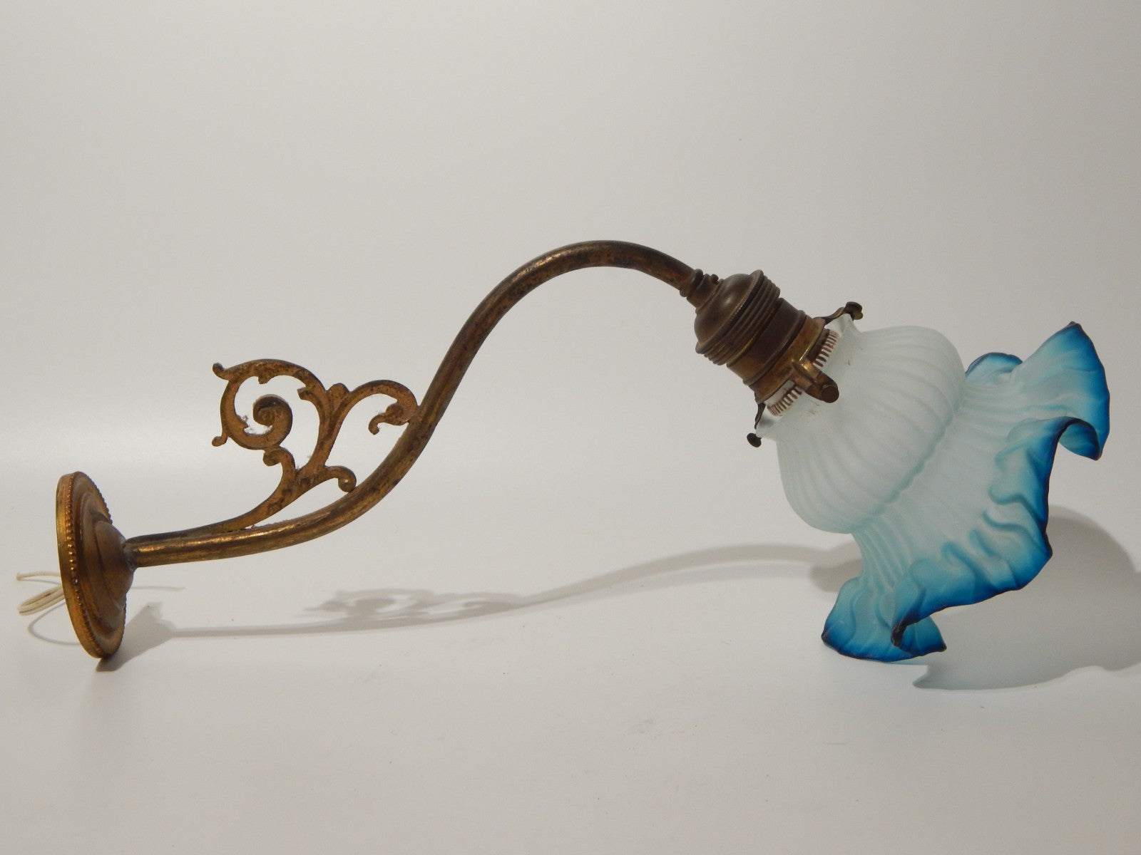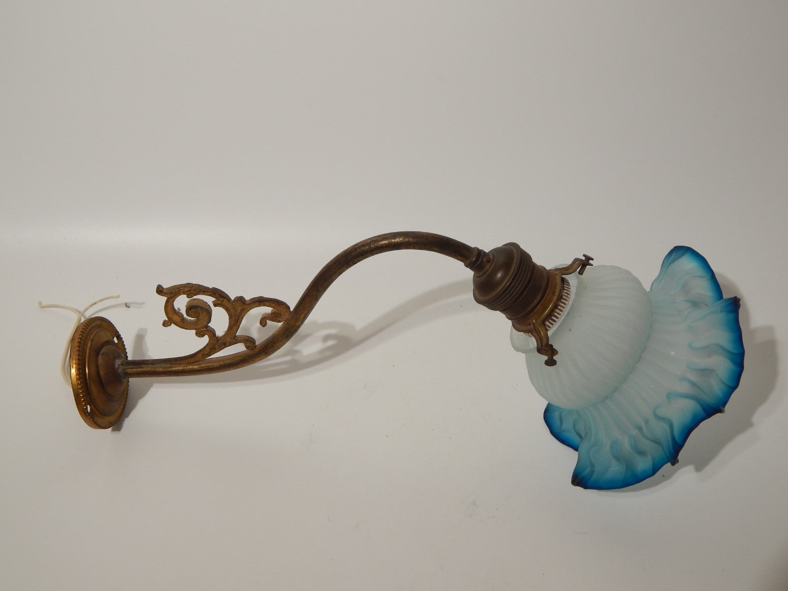 In questa inserzione viene presentata un'antica applique in ottone con tulip in vetro satinato