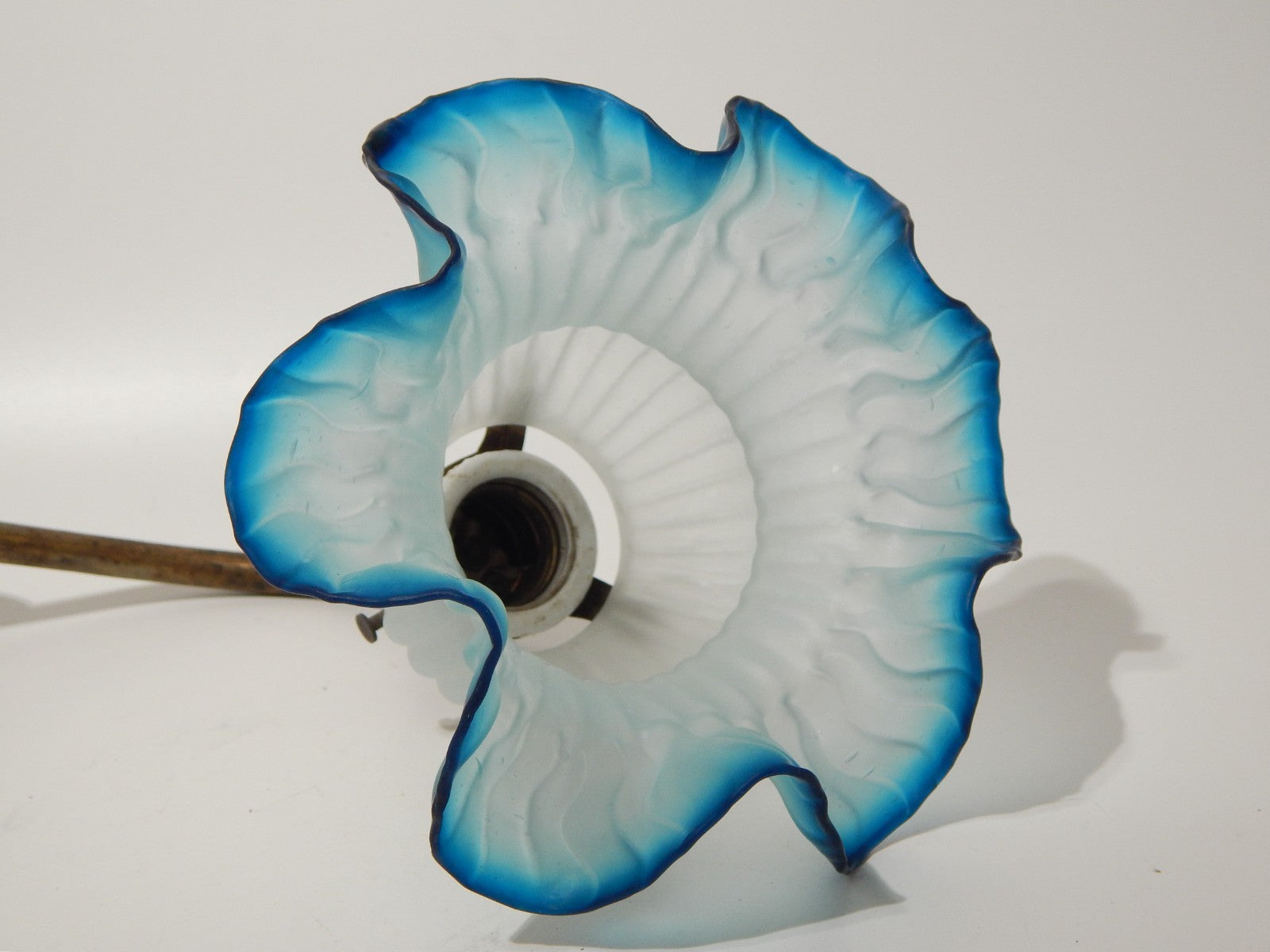 ANTICA LIBERTY APPLIQUE LAMPADA PARETE OTTONE TULIP VETRO SATINATO BLU SFUMATO