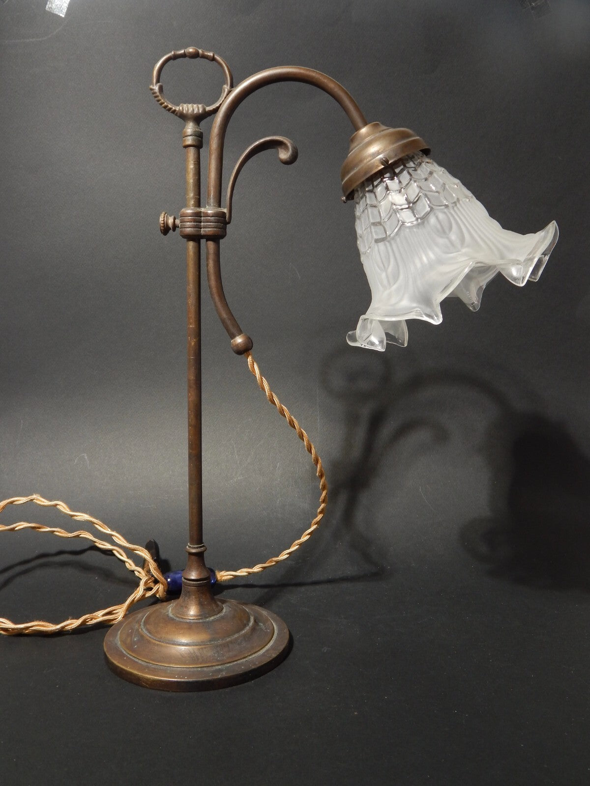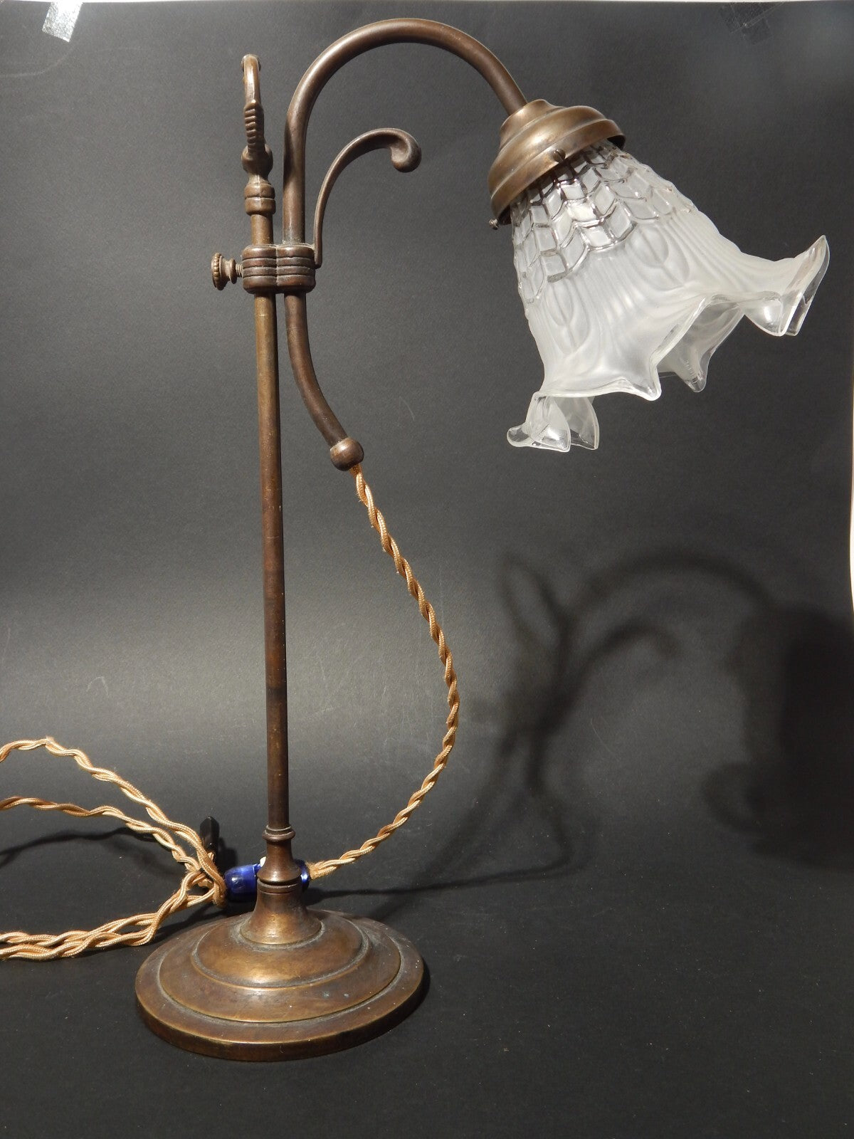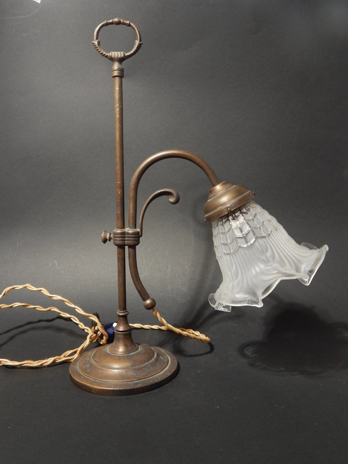 In questa inserzione viene presentata un'antica lampada da tavolo o scrivania risalente ai primi anni del 1900