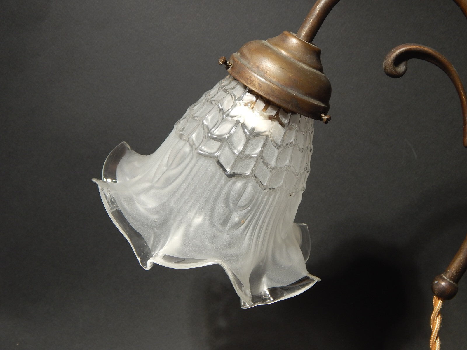 ANTICA LIBERTY LAMPADA DA TAVOLO SCRIVANIA CON PARALUME A TULIP IN VETRO