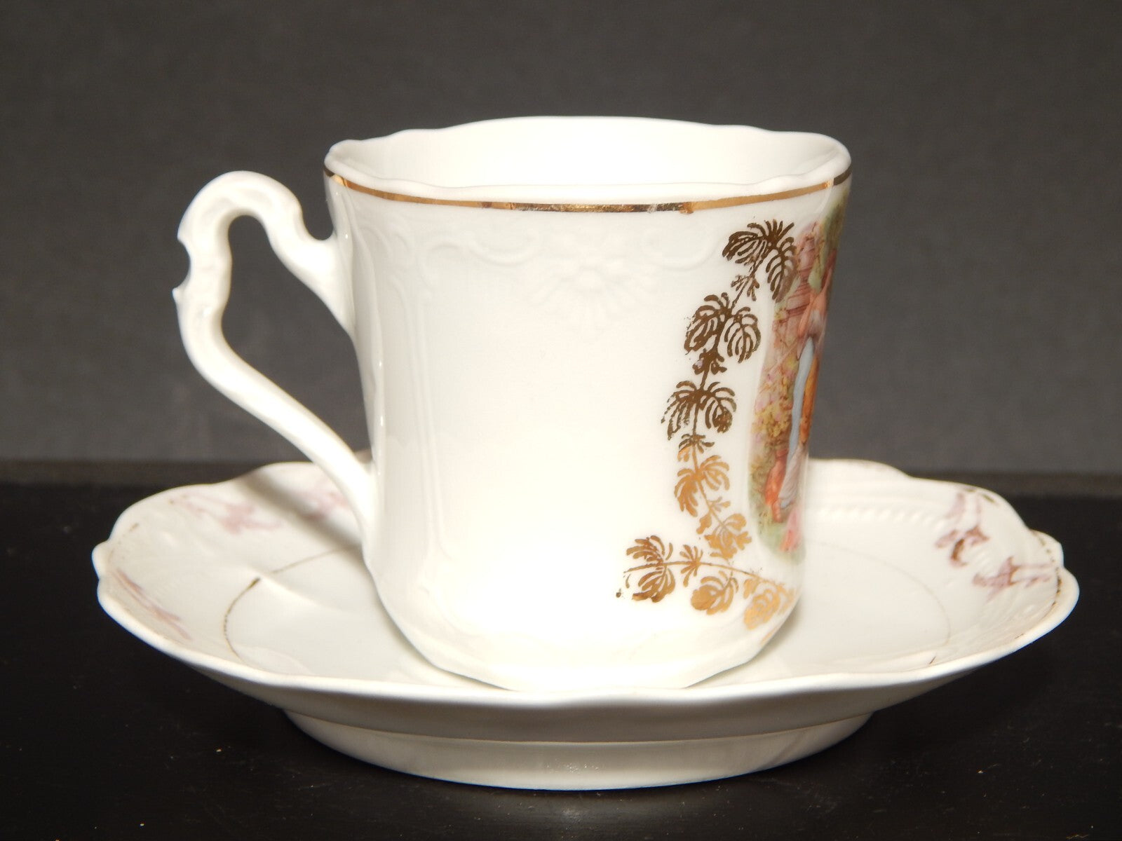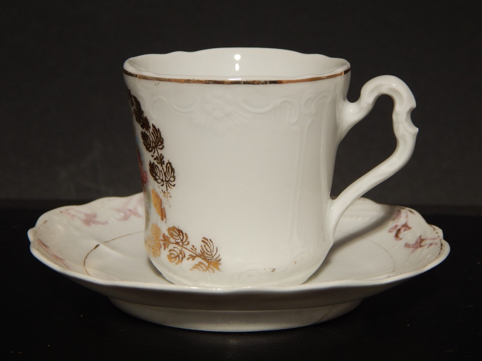 In questa inserzione viene presentato un set da caffè, tazzina e piattino, realizzato dalla manifattura tedesca Carl Tielsch Altwasser Silesia nei primi anni del 900