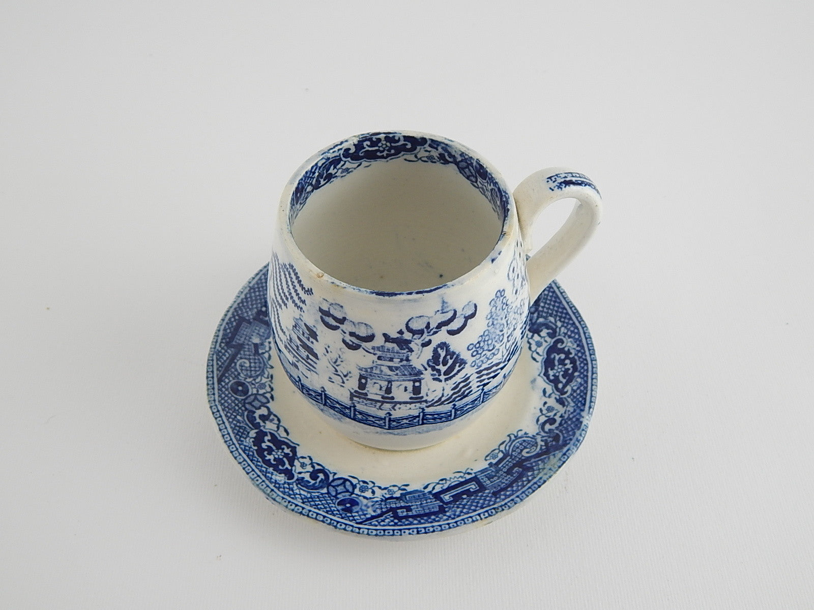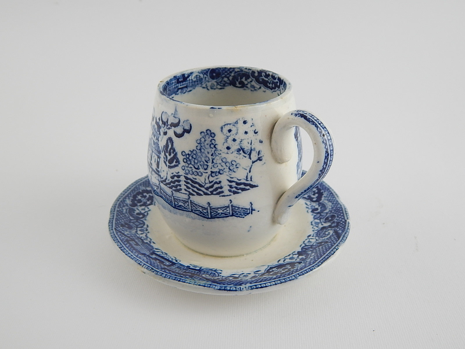 ANTICA MOSTARDIERA SALSIERA CERAMICA POTTERY INGLESE WILLOW COLONIALE META' 1800