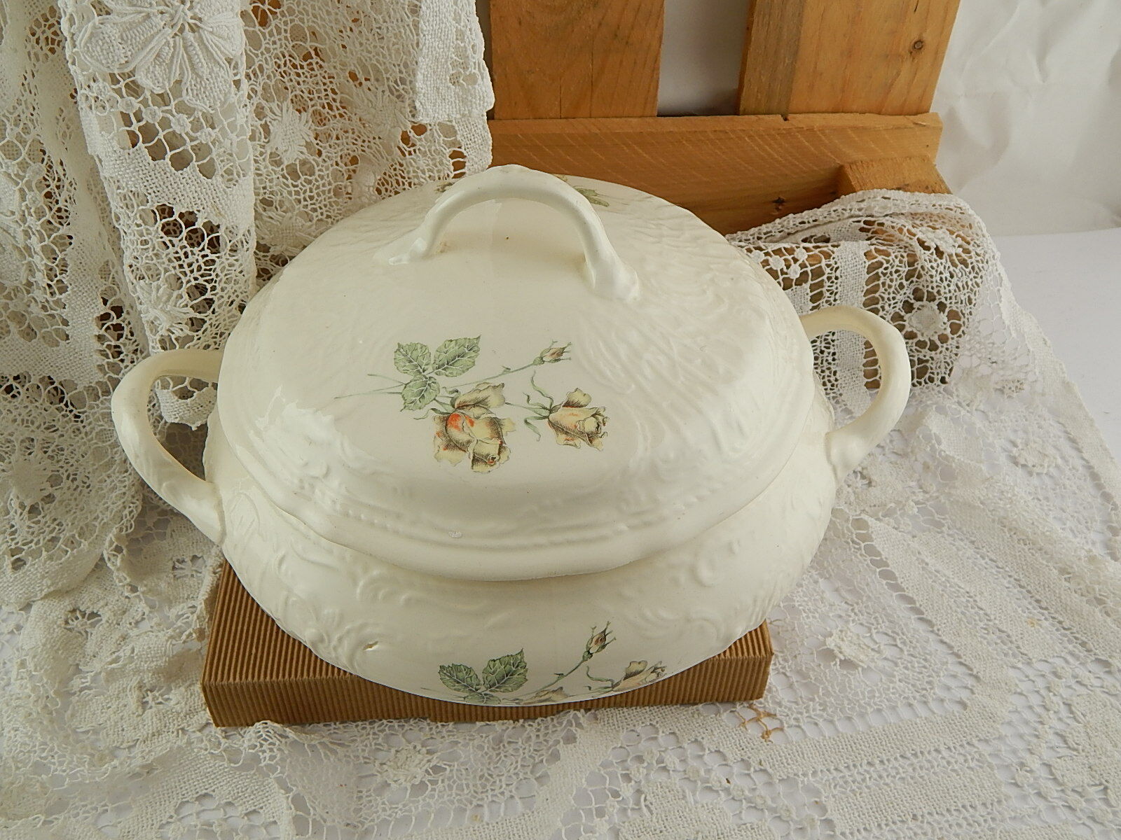 ANTICA ORIGINALE ZUPPIERA PORCELLANA OPACA AMERICANA IMPERIAL CROWN IVORY STONE