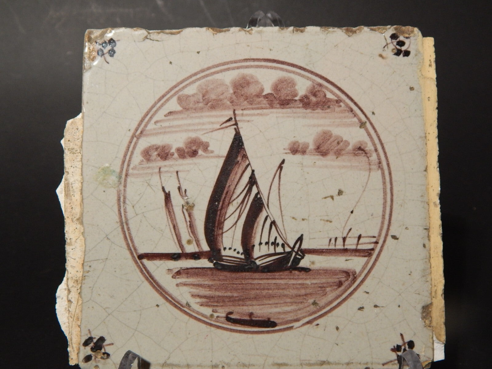 ANTICA PIASTRELLA MATTONELLA CERAMICA DELFT DEL 1700 DECORO AL MANGANESE (475)