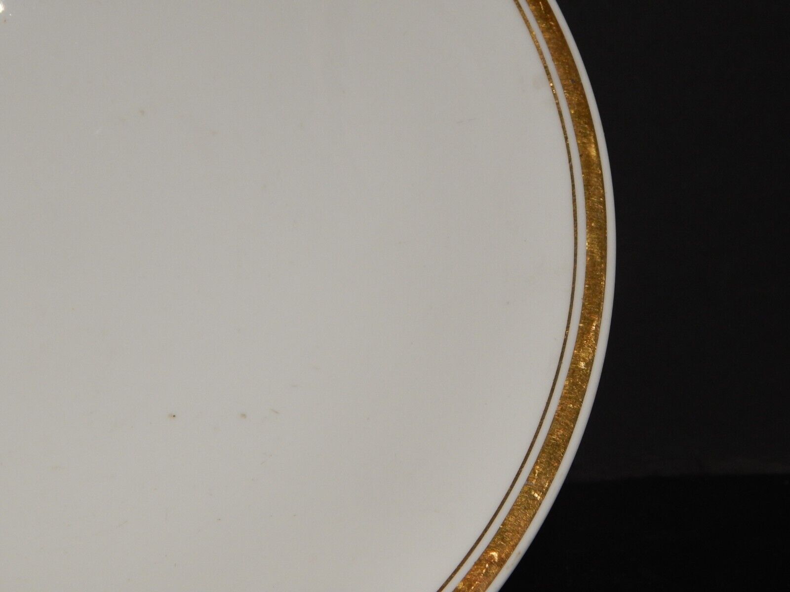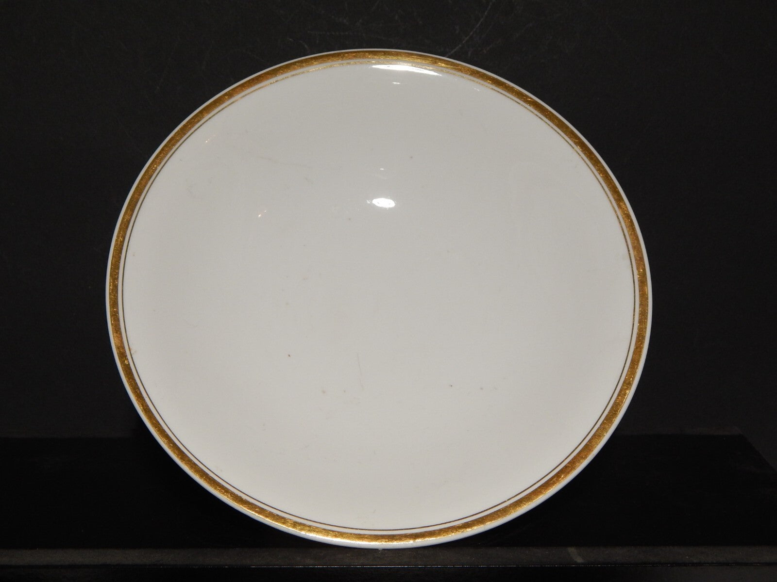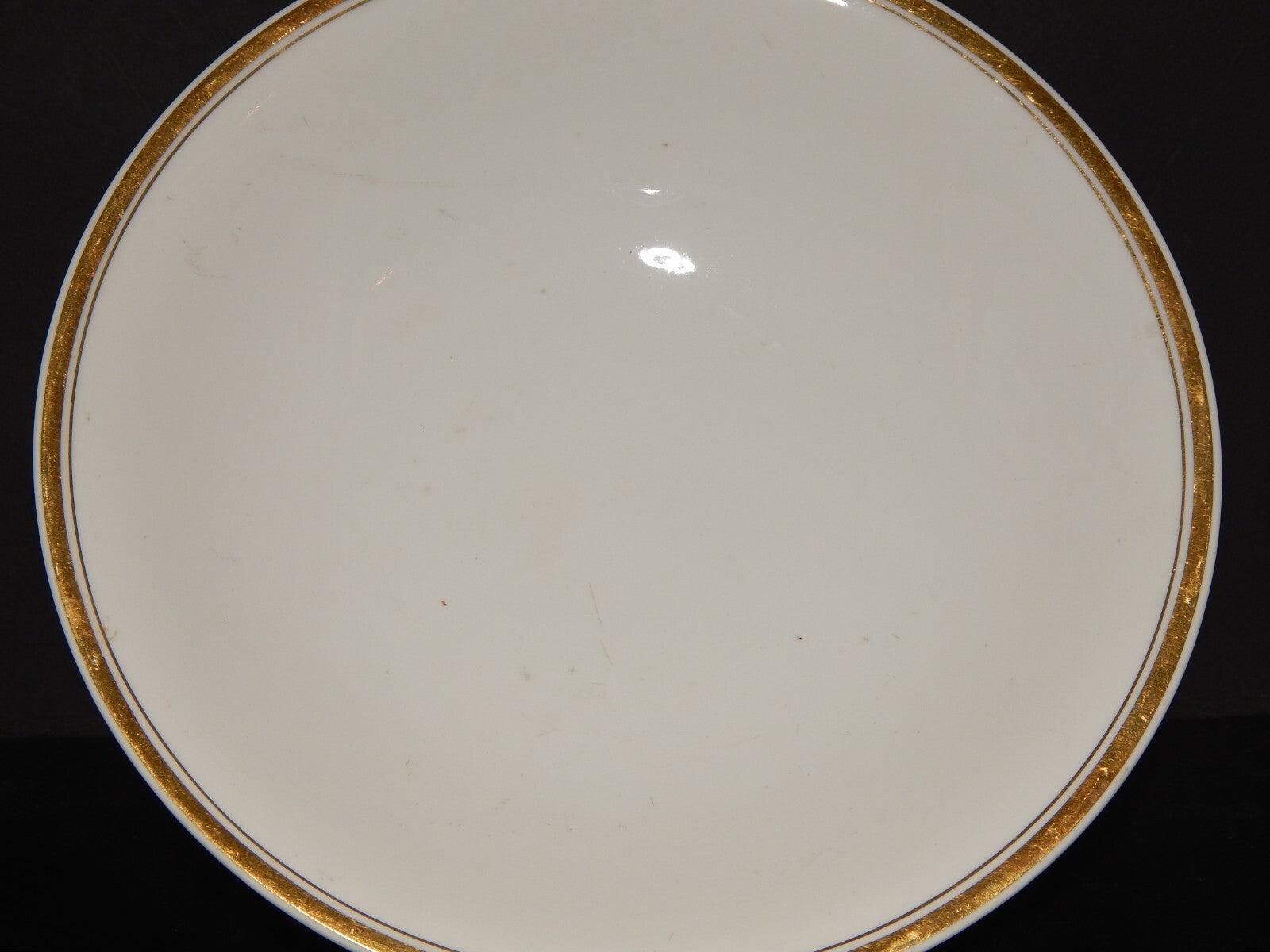 La fruttiera in porcellana bianca è decorata a mano in oro zecchino e misura 23,5 cm di diametro e 10 cm di altezza