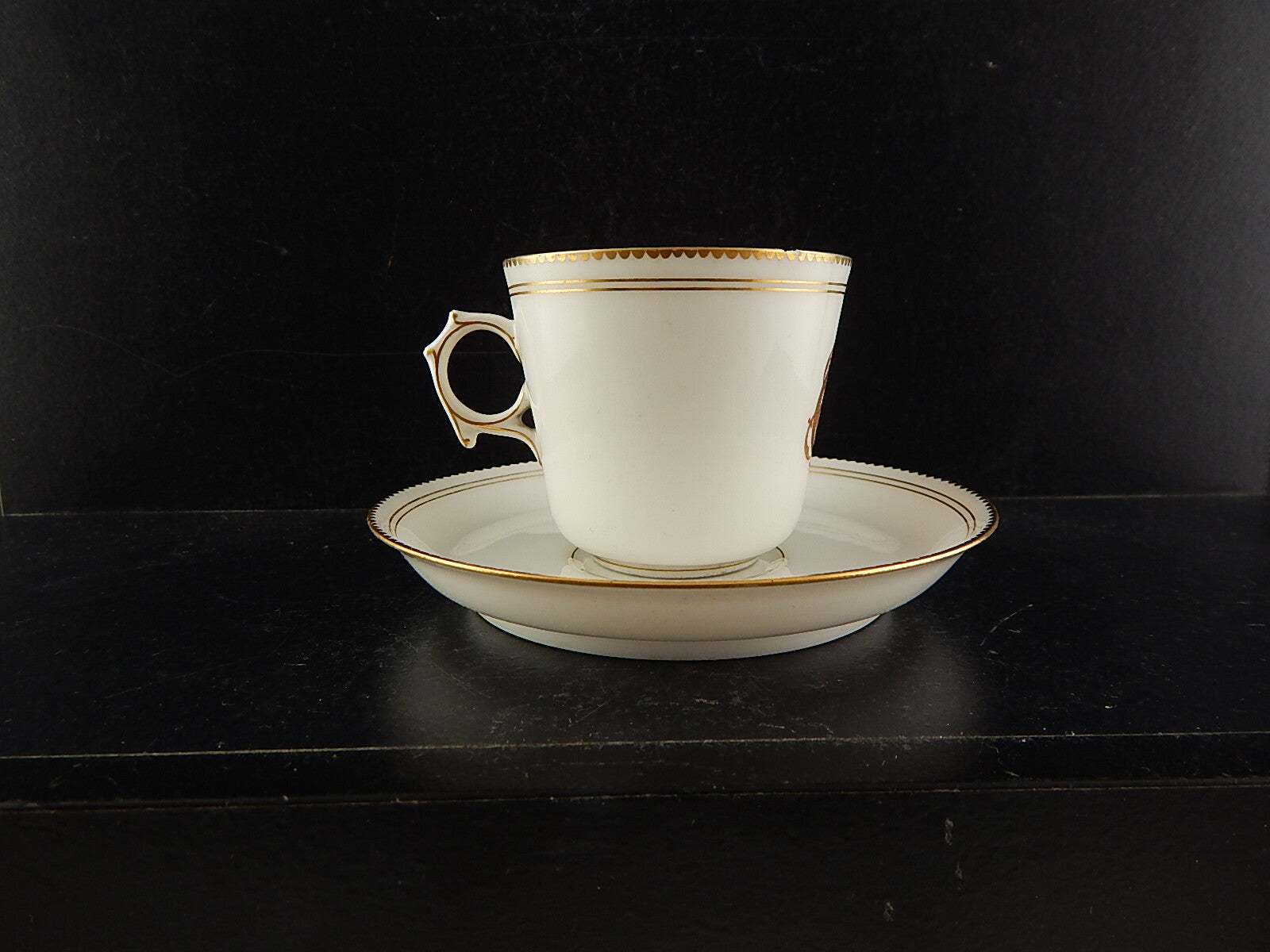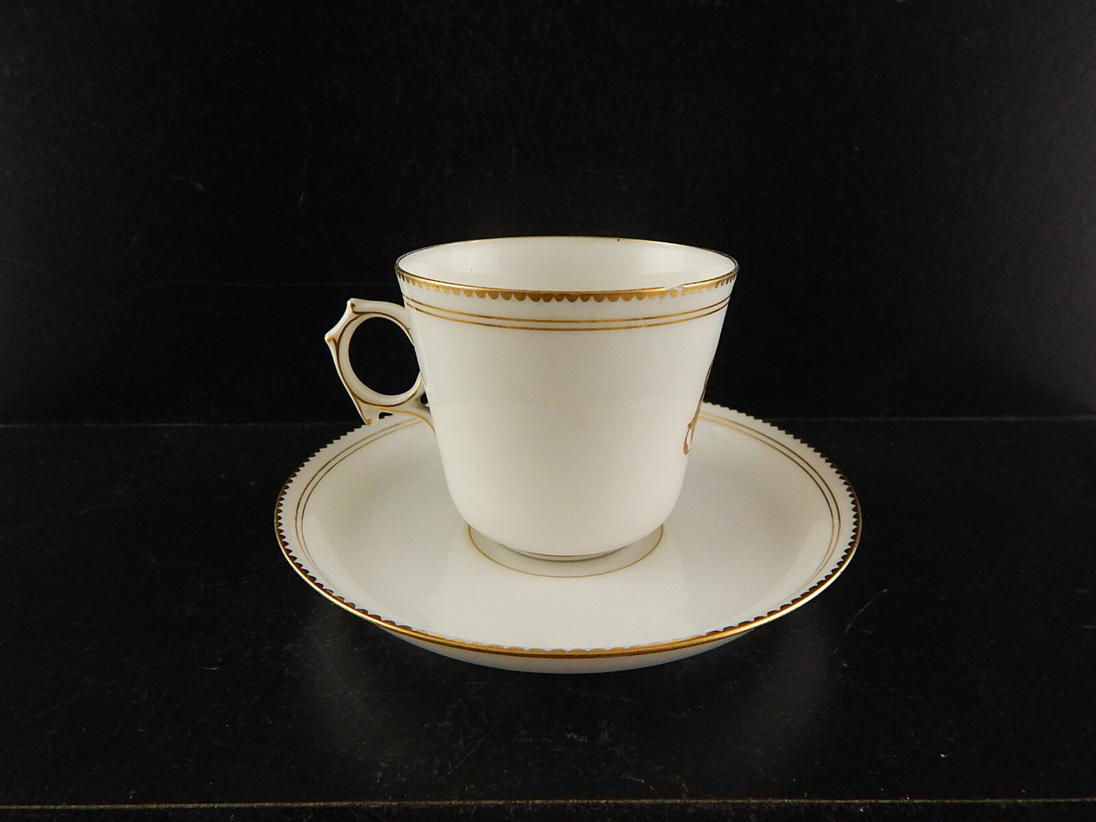 In questa inserzione viene presentata una tazza con relativo piattino in porcellana con monogramma dipinto a mano e rifinita in oro zecchino dalla manifattura francese di Vierzon Paris Alfred HACHE & Co nei primi anni del 1900.