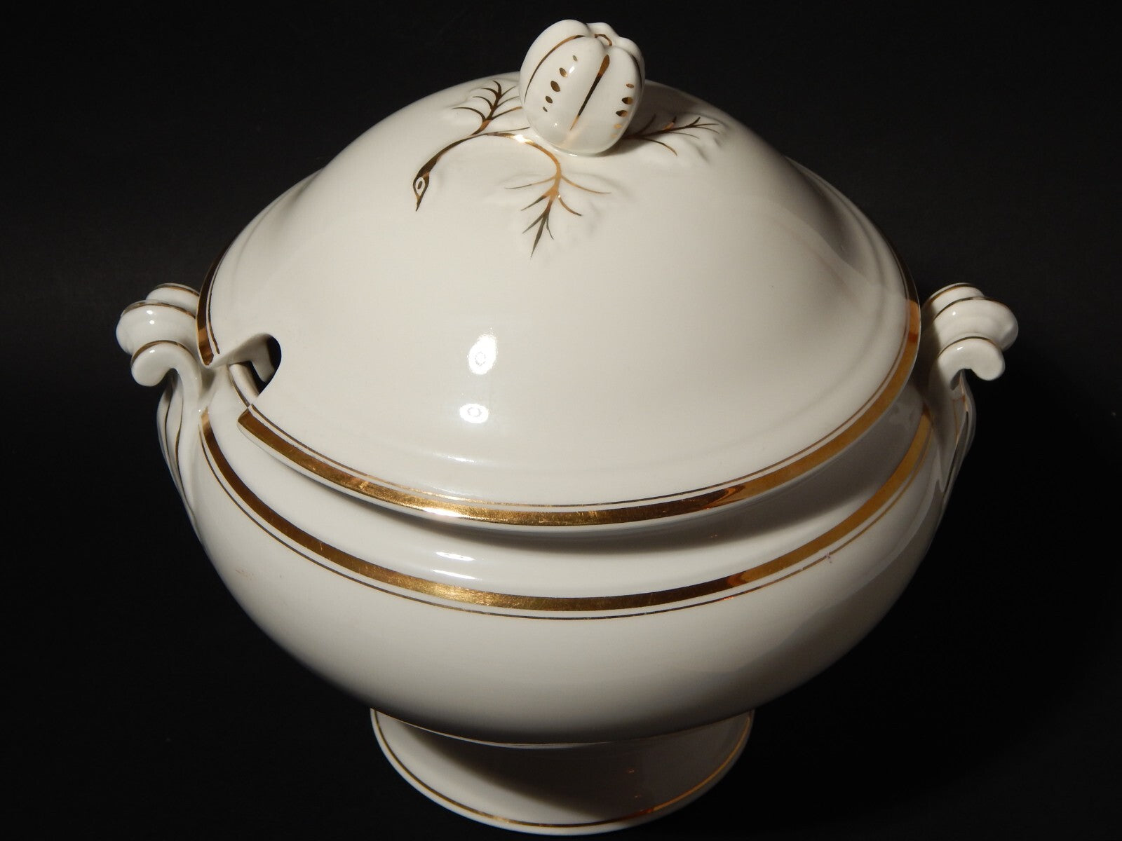 In questa inserzione viene presentata una zuppiera realizzata dalla manifattura tedesca Carl Tielsch Altwasser in stile impero nella seconda metà del 800