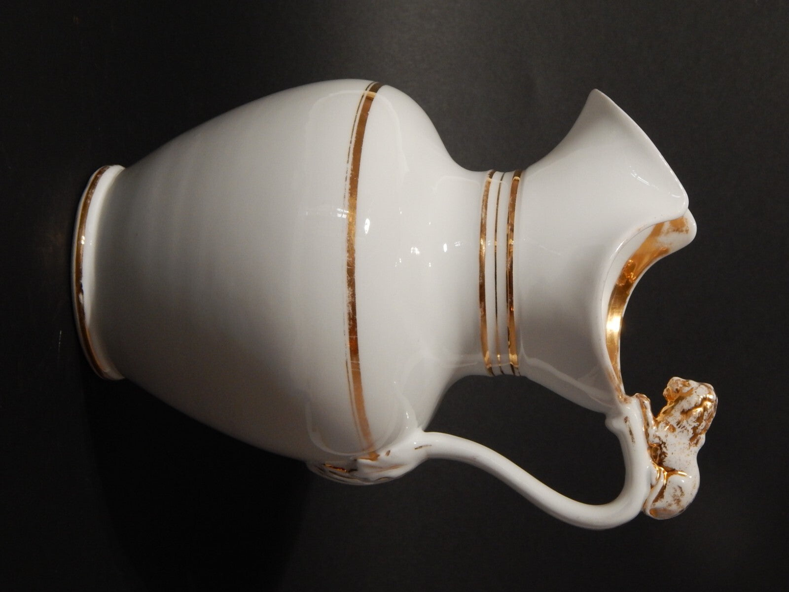 In questa inserzione viene presentata un'antica brocca con coperchio o cioccolatiera in stile impero in porcellana a pasta dura realizzato in Germania nella seconda metà del 1800 dalla manifattura Carl Tielsch.