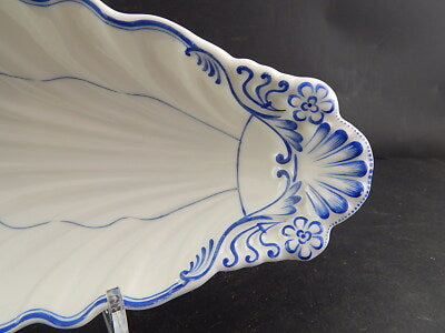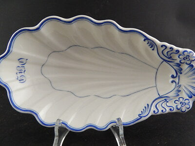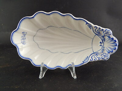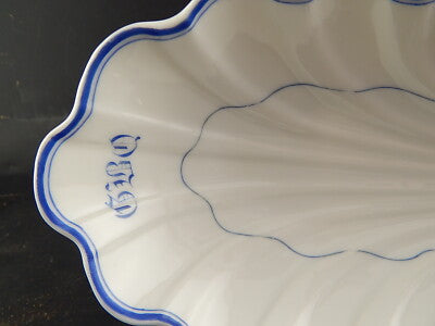 ANTICA PREZIOSA CONCHIGLIA VASSOIO PORCELLANA DI PARIGI PROFILI BLU FINE 800