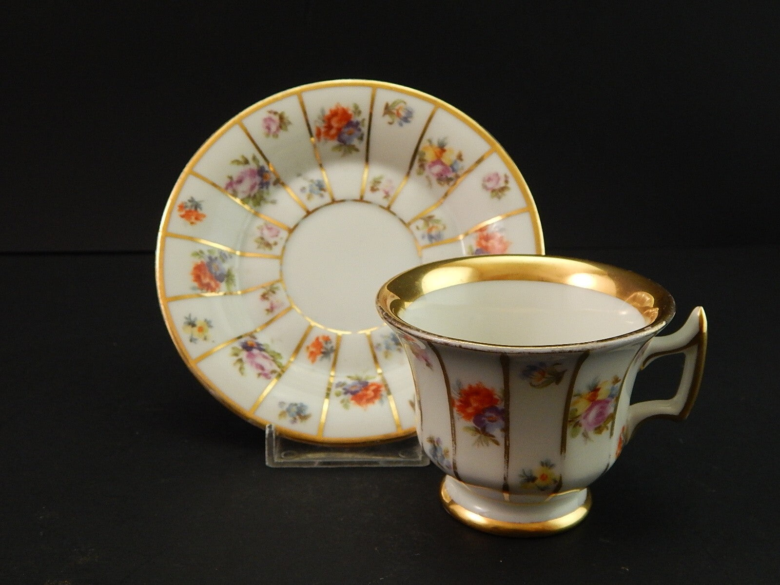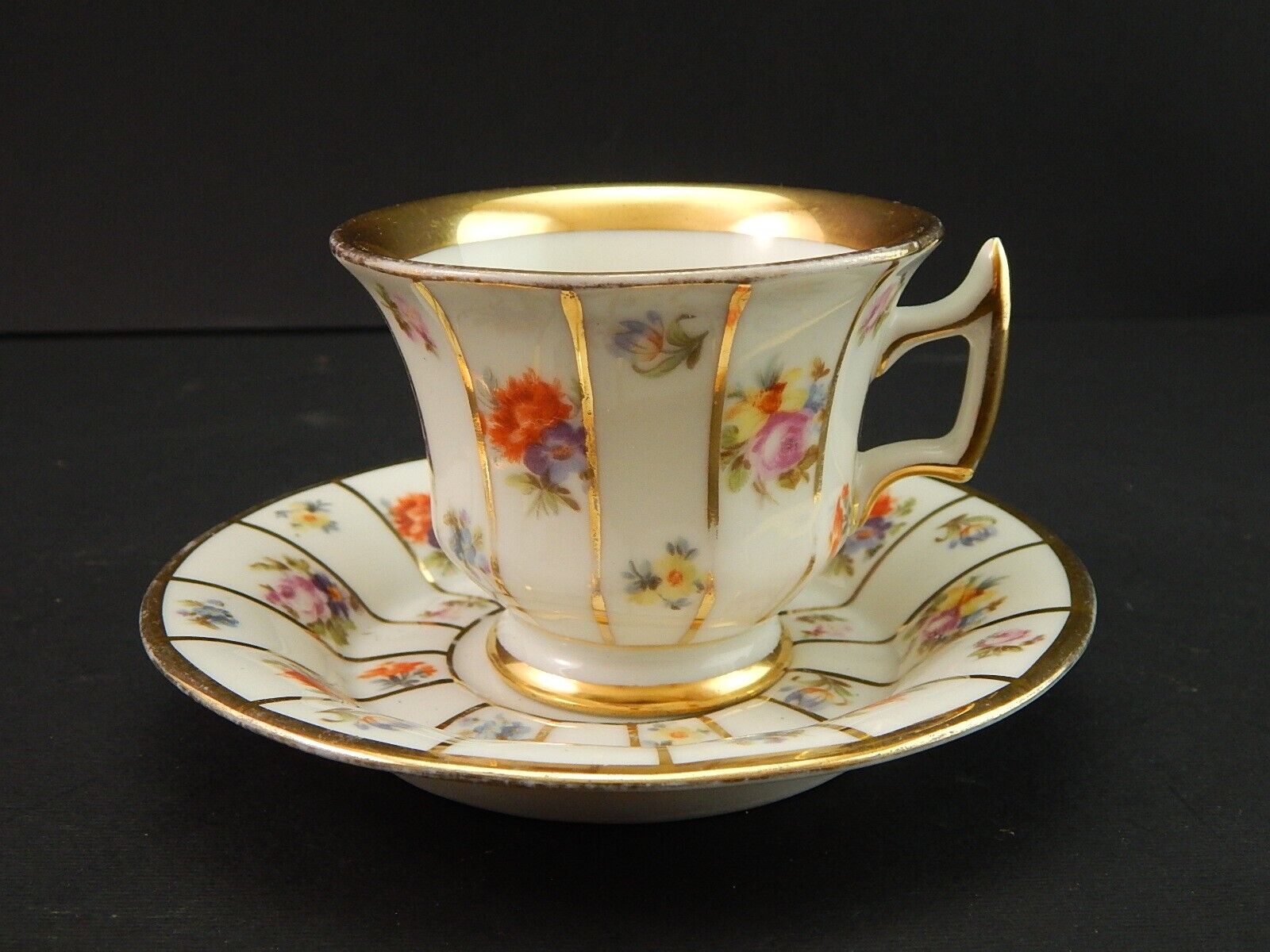 ANTICA PREZIOSA EPIAG TAZZA PORCELLANA BIANCA FIORI POLICROMI E ORO STILE IMPERO