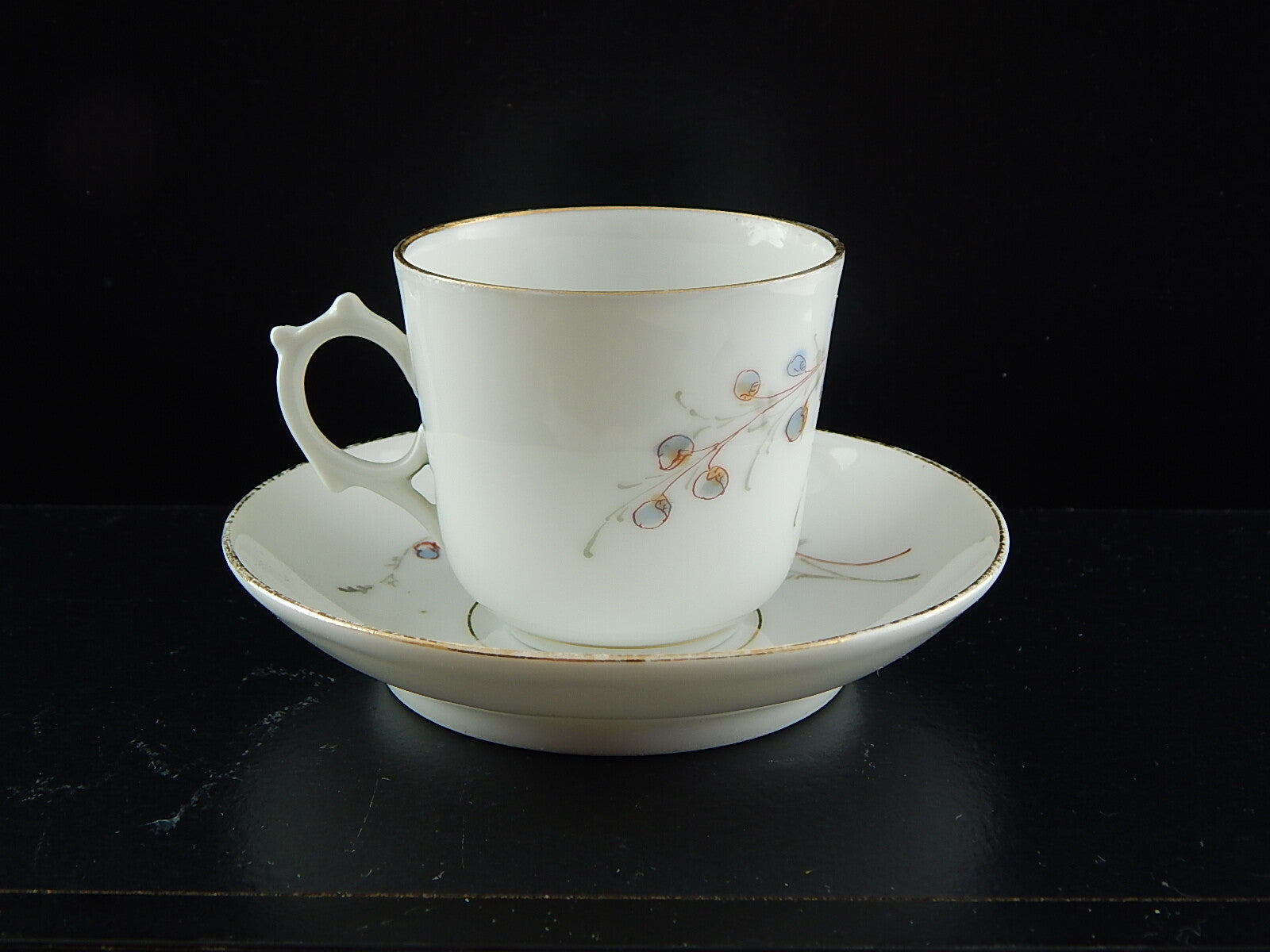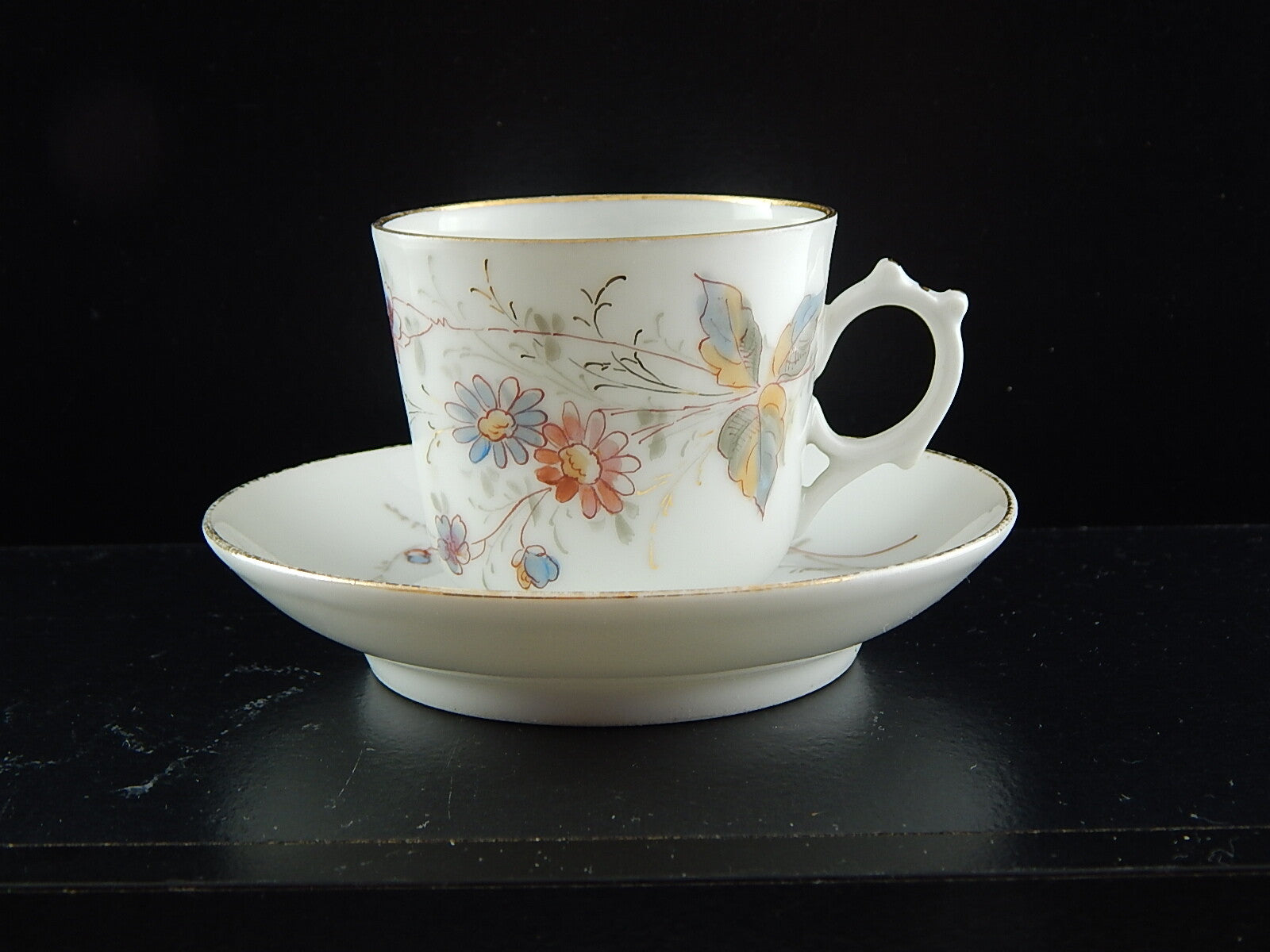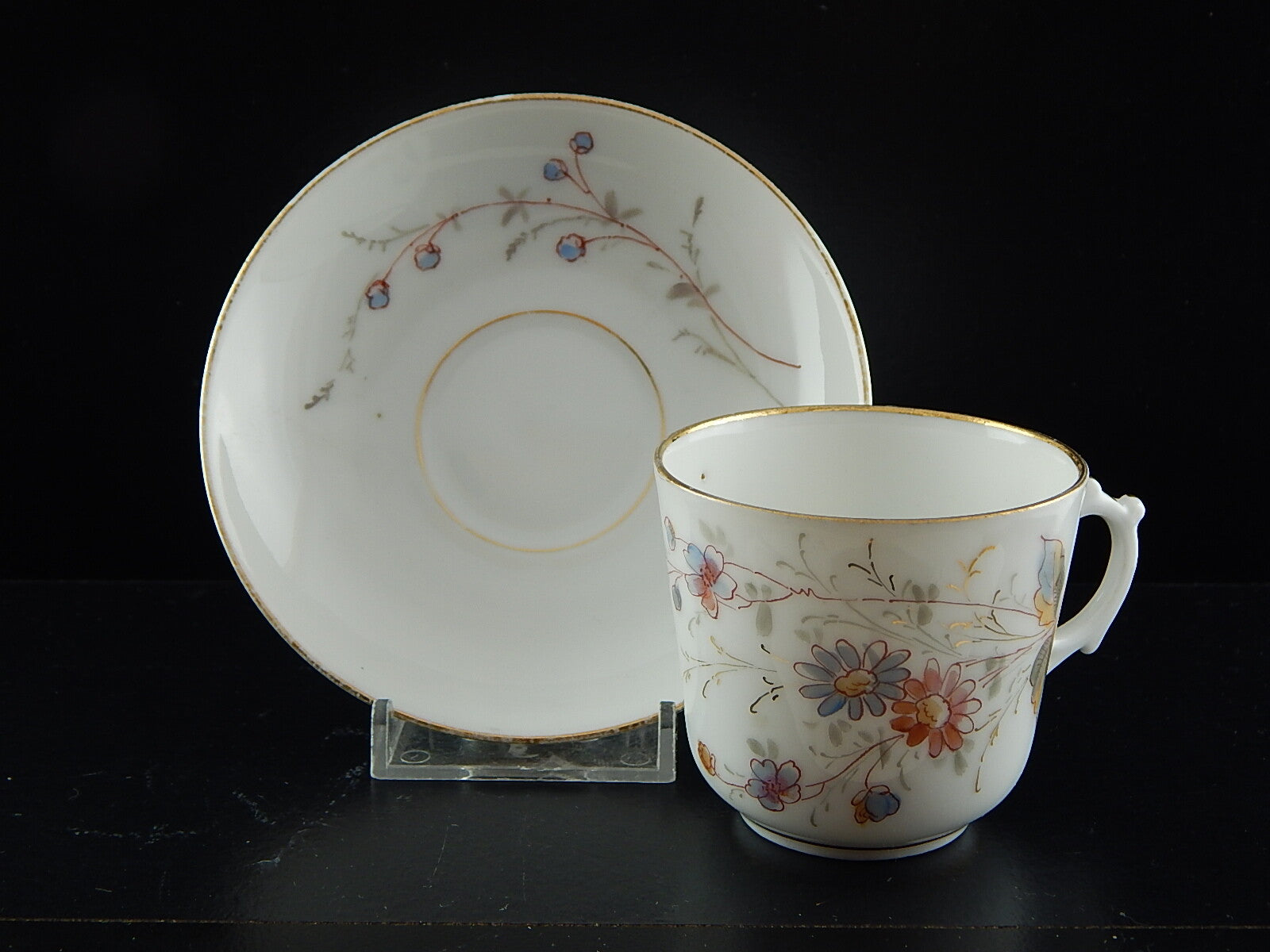 In questa inserzione viene presentata un'antica e rara tazzina da caffè con piattino in porcellana a metà del 1800 dipinta a mano