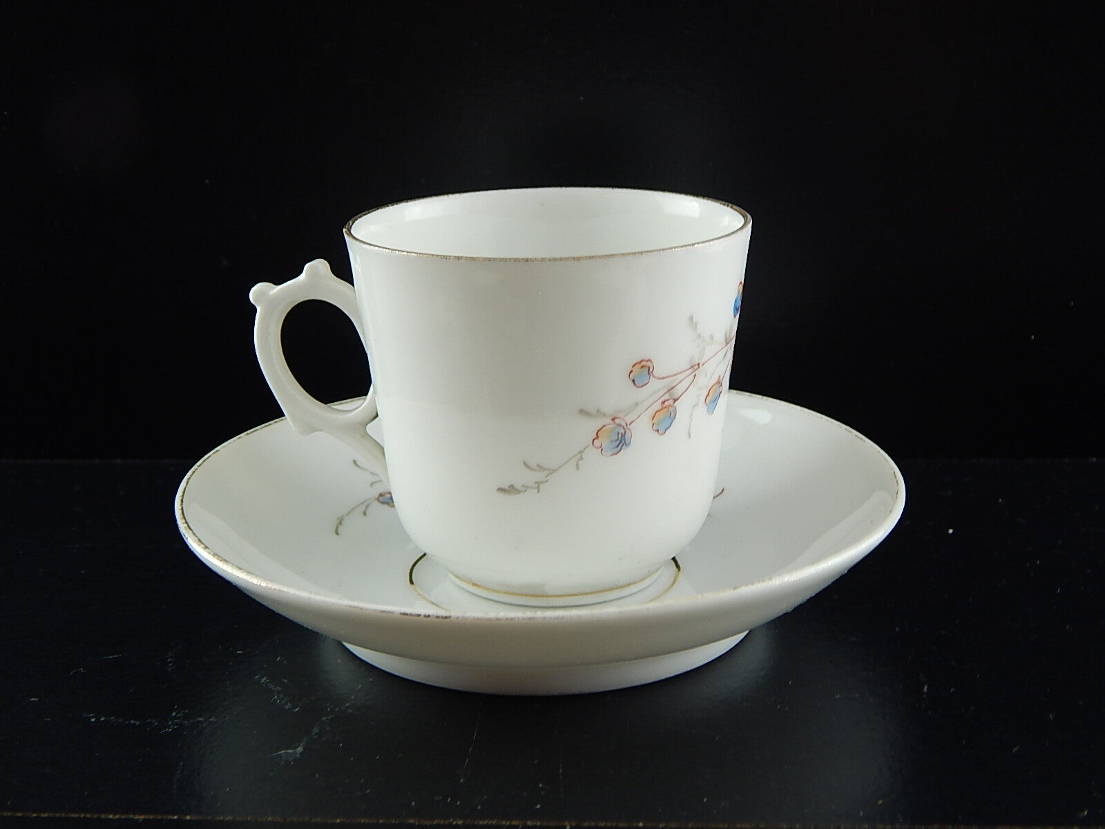In questa inserzione viene presentata un'antica e rara tazzina da caffè con piattino in porcellana a metà del 1800 dipinta a mano