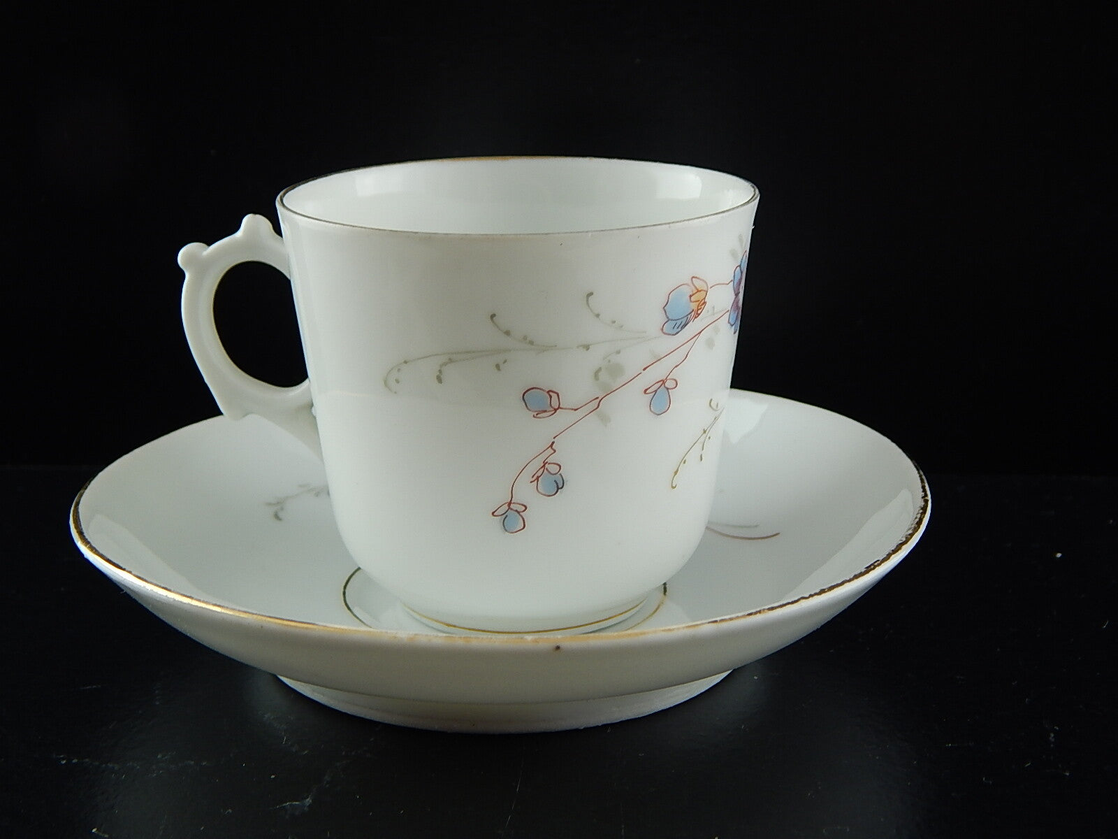 In questa inserzione viene presentata un'antica e rara tazzina da caffè con piattino in porcellana a metà del 1800 dipinta a mano