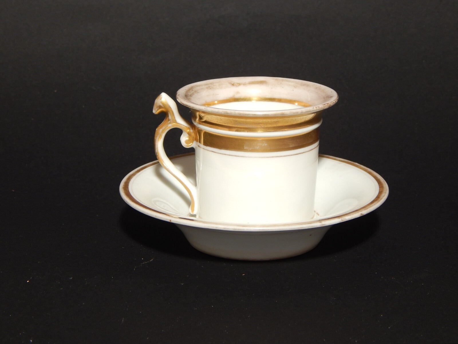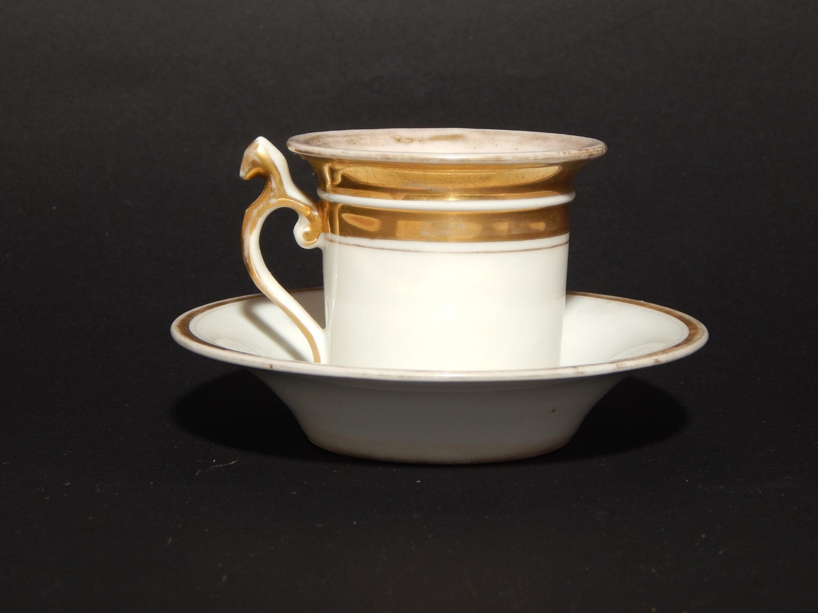 ANTICA PREZIOSA TAZZA PORCELLANA BIANCA E ORO IMPERO GINORI DOCCIA META' 800 #