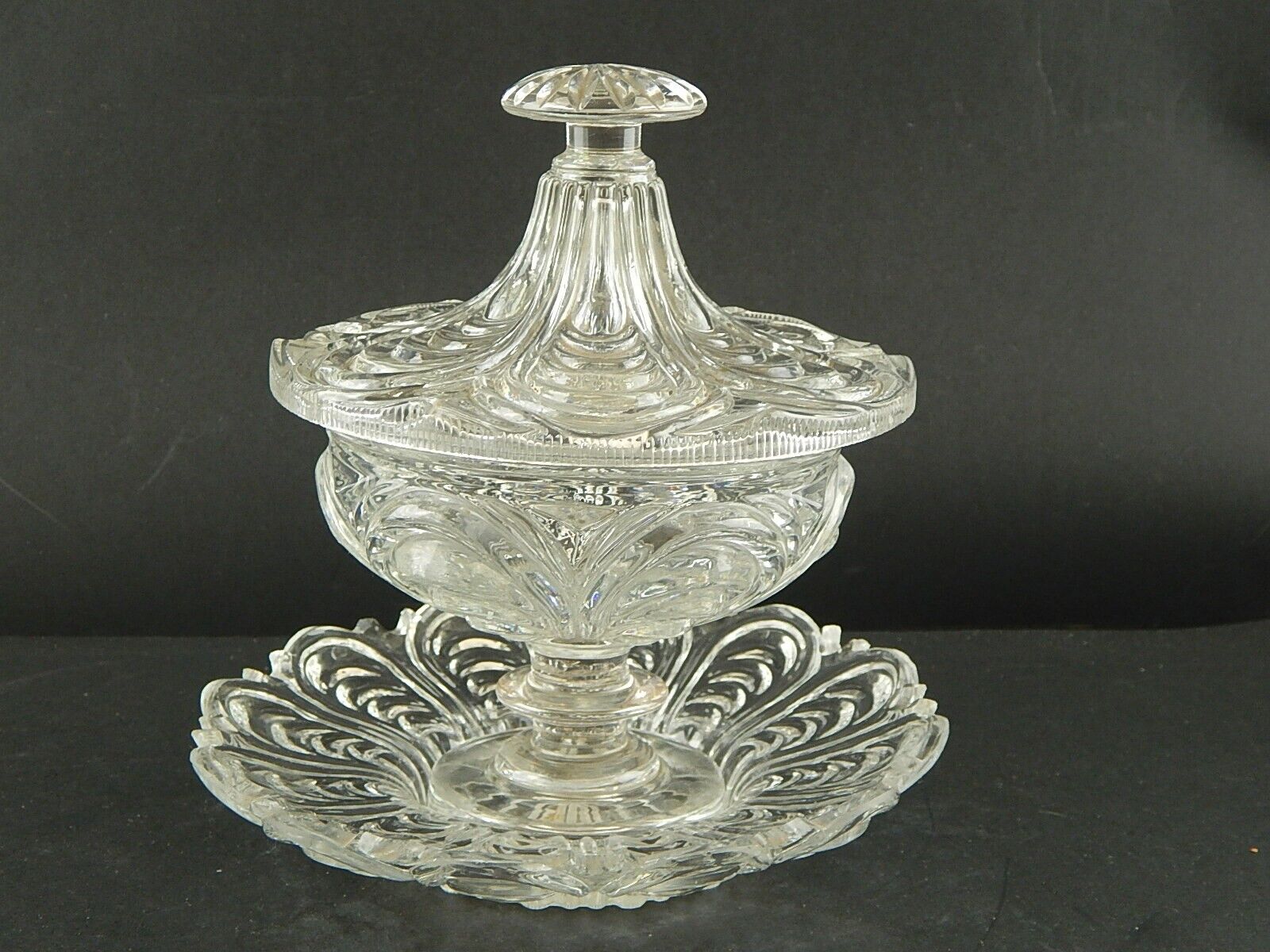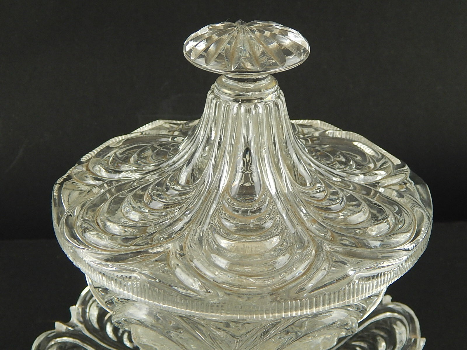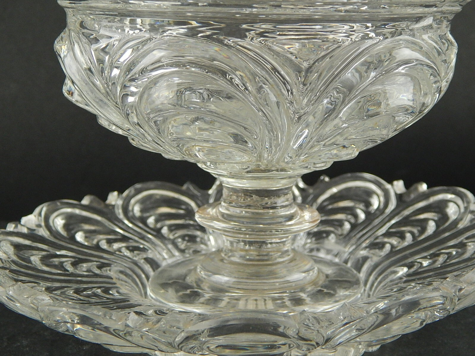 In questa inserzione viene presentato un antico centrotavola in vetro pressato realizzato nella prima metà del 1800