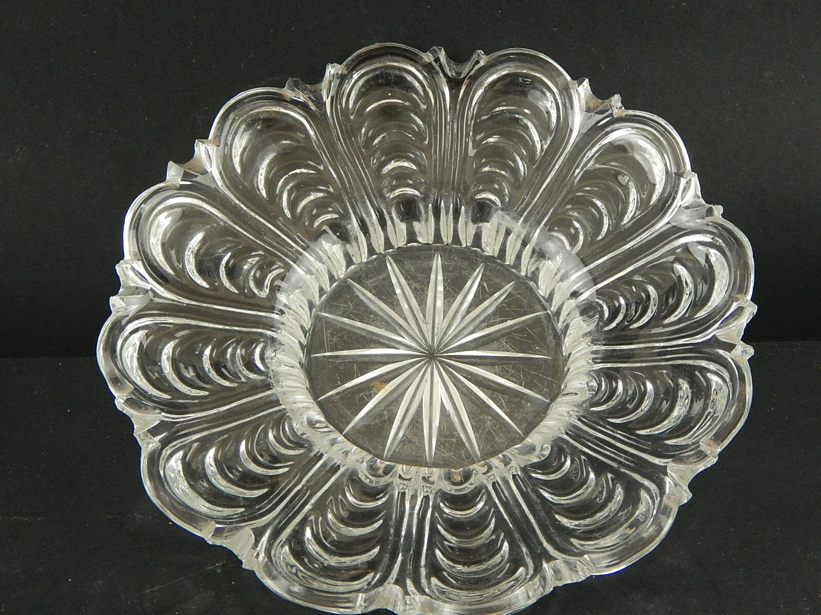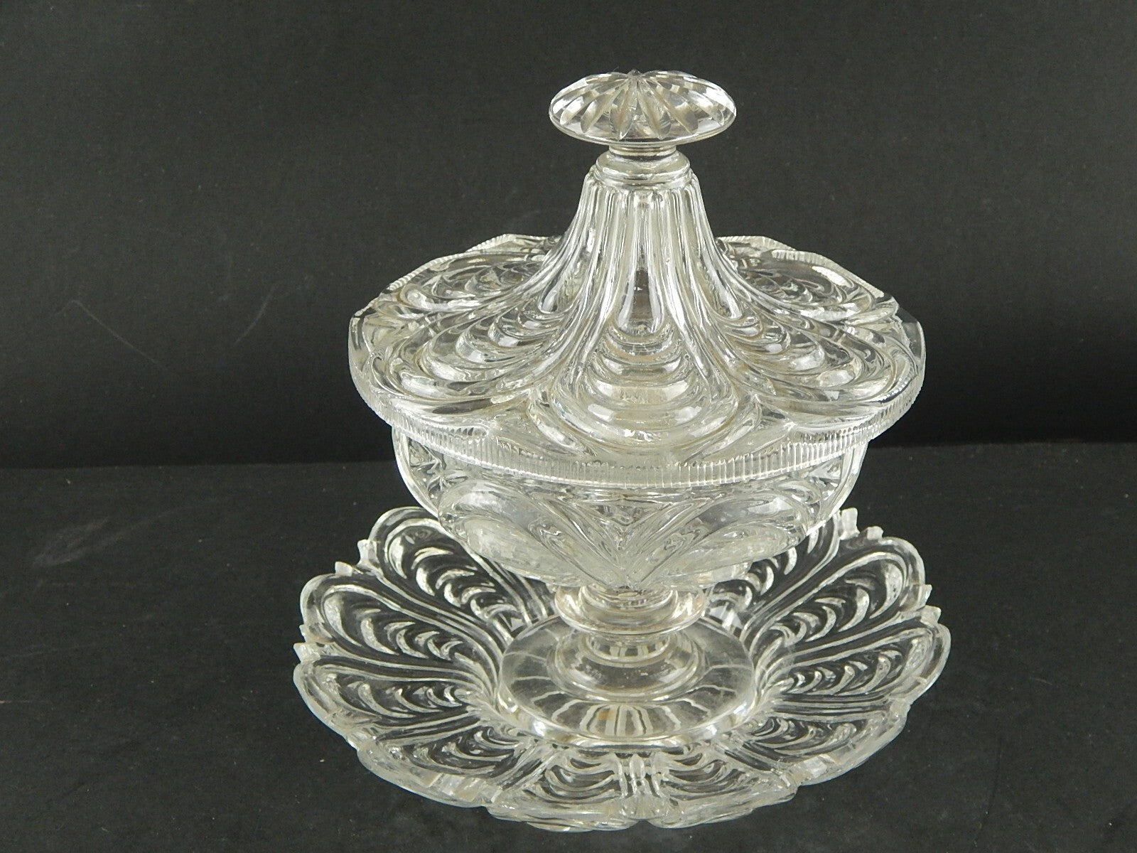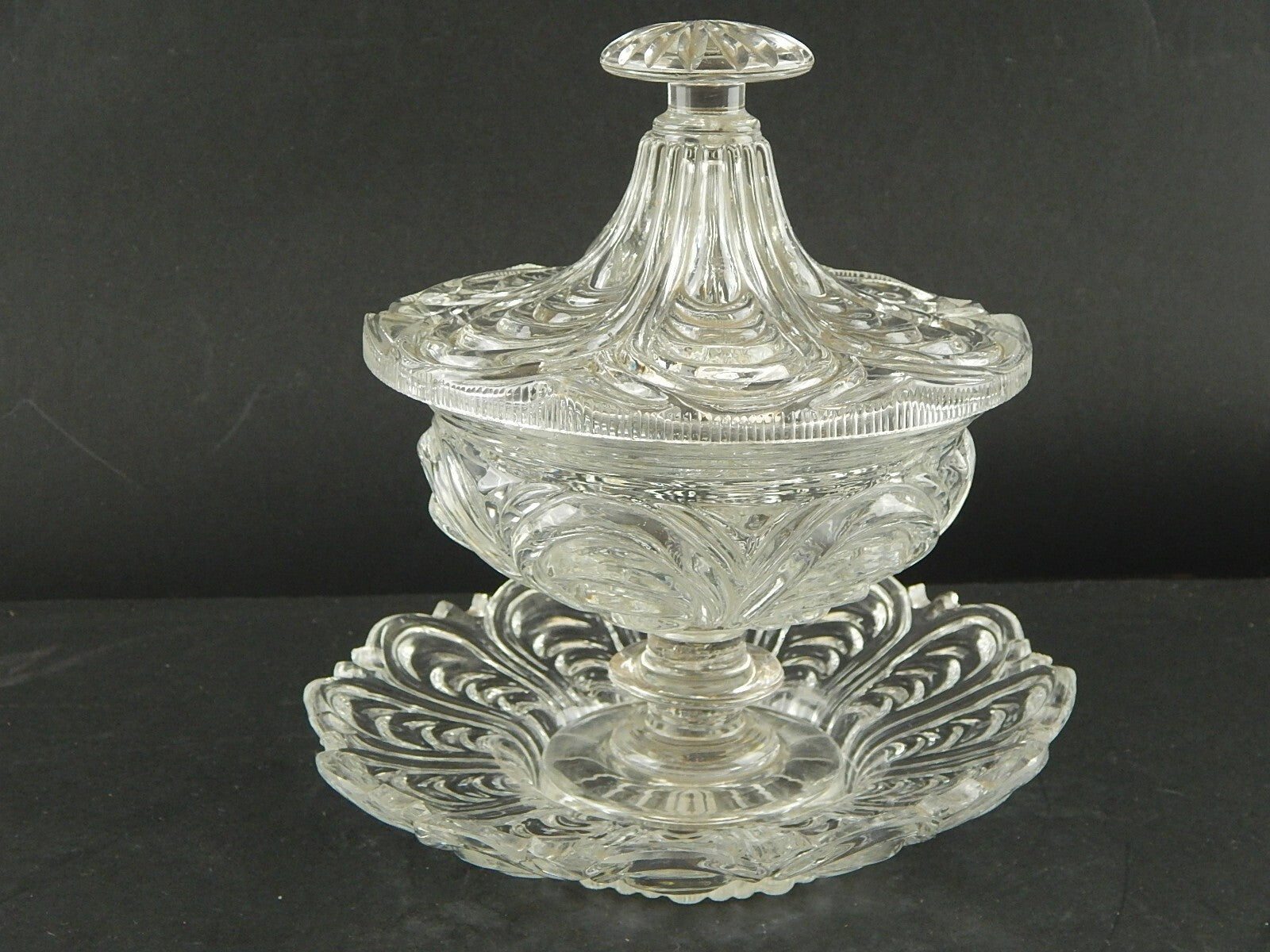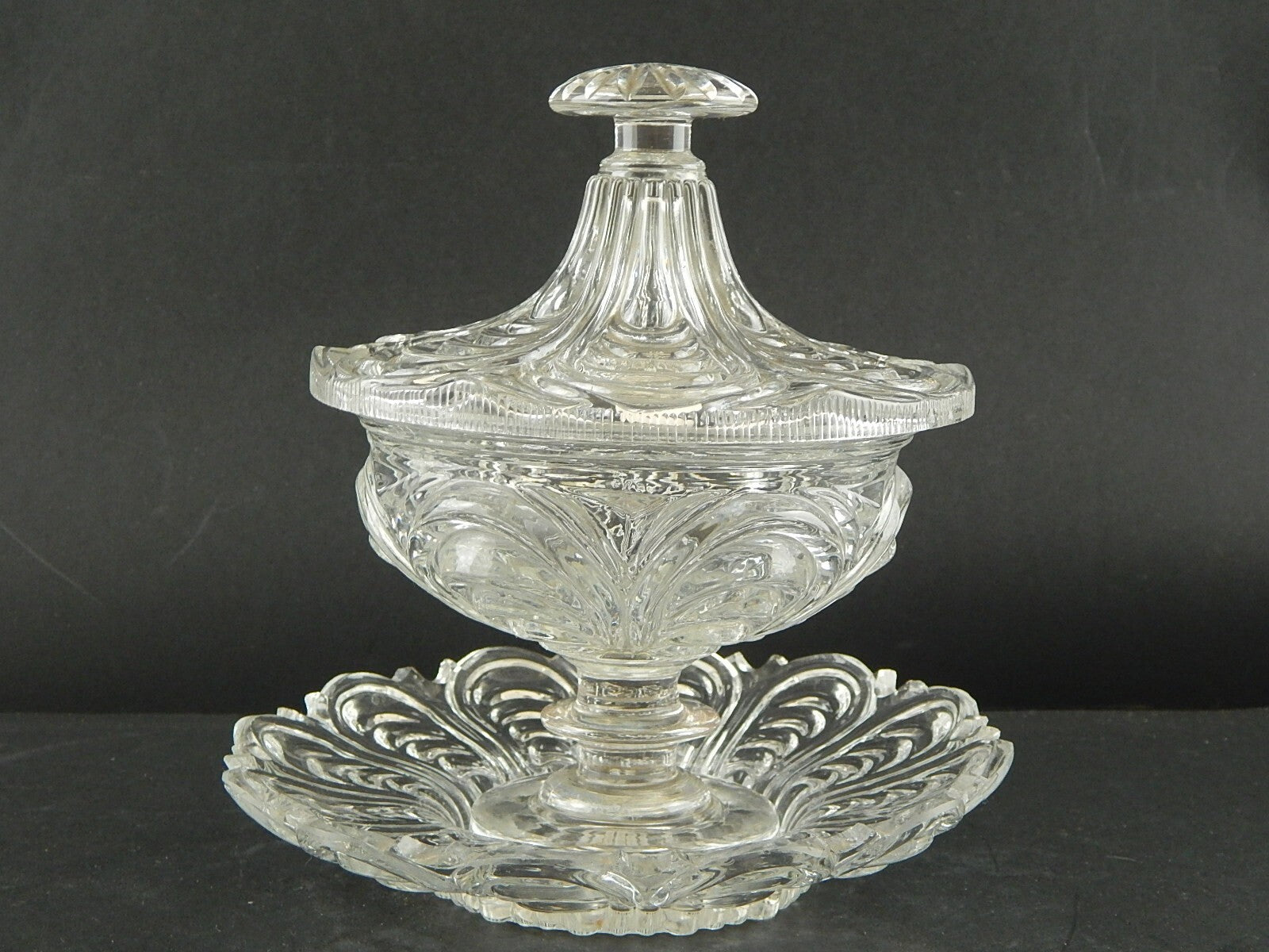 In questa inserzione viene presentato un antico centrotavola in vetro pressato realizzato nella prima metà del 1800
