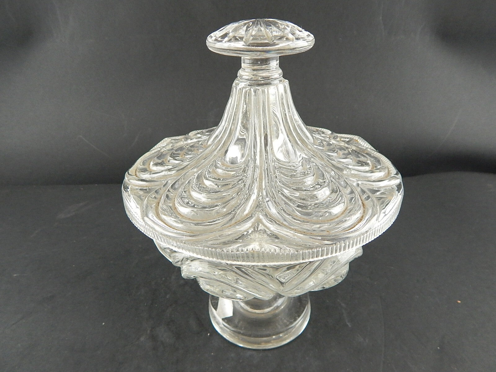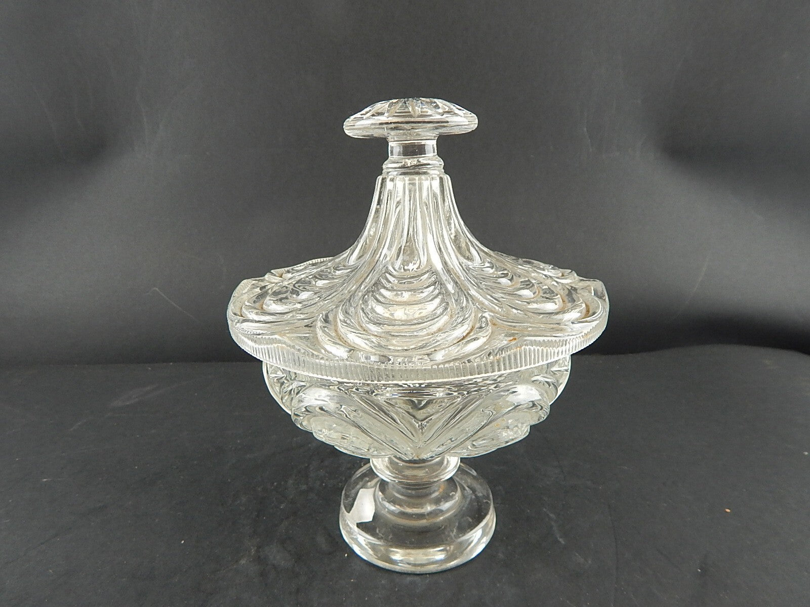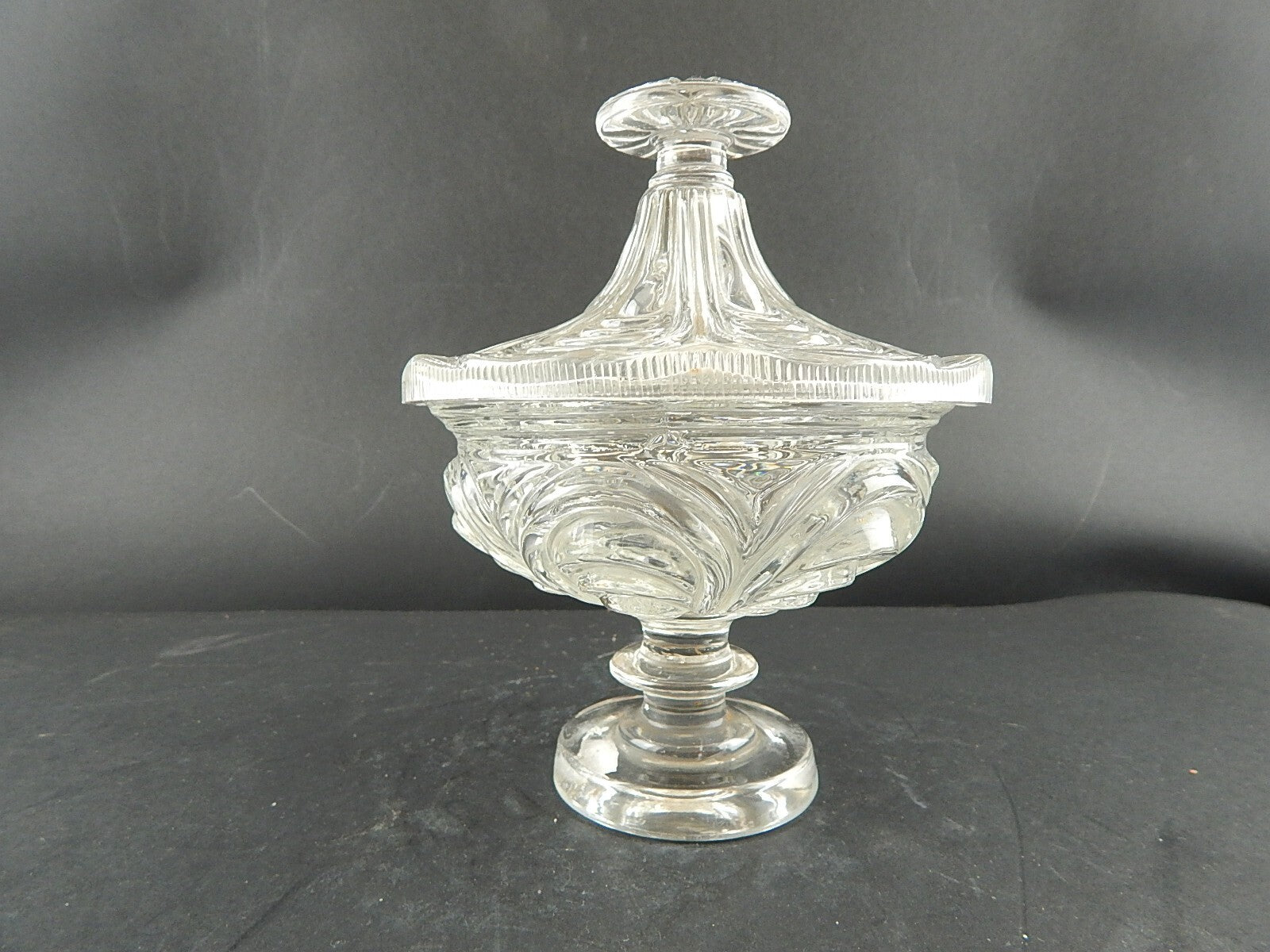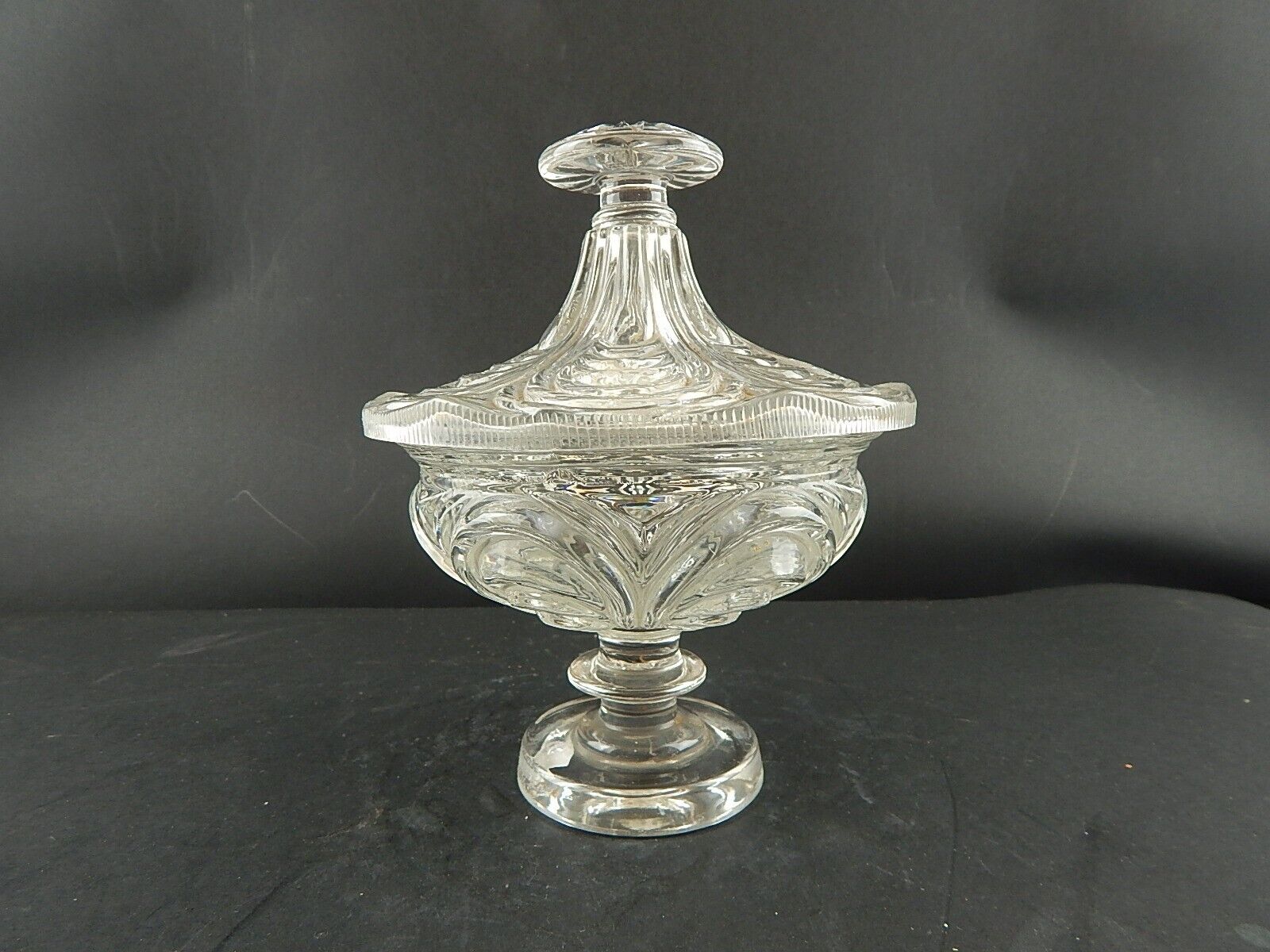 In questa inserzione viene presentato un antico centrotavola in vetro pressato realizzato nella prima metà del 1800